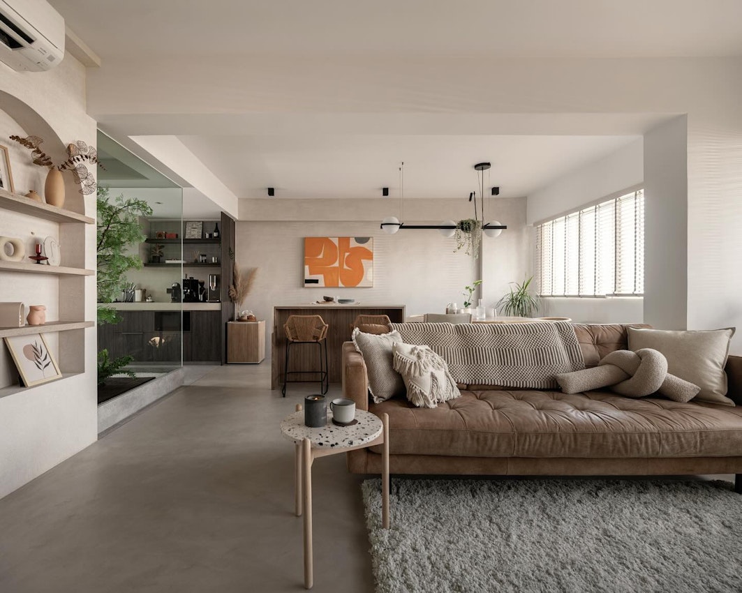 Japandi and Balinese influences to transform an urban flat into a natural haven.