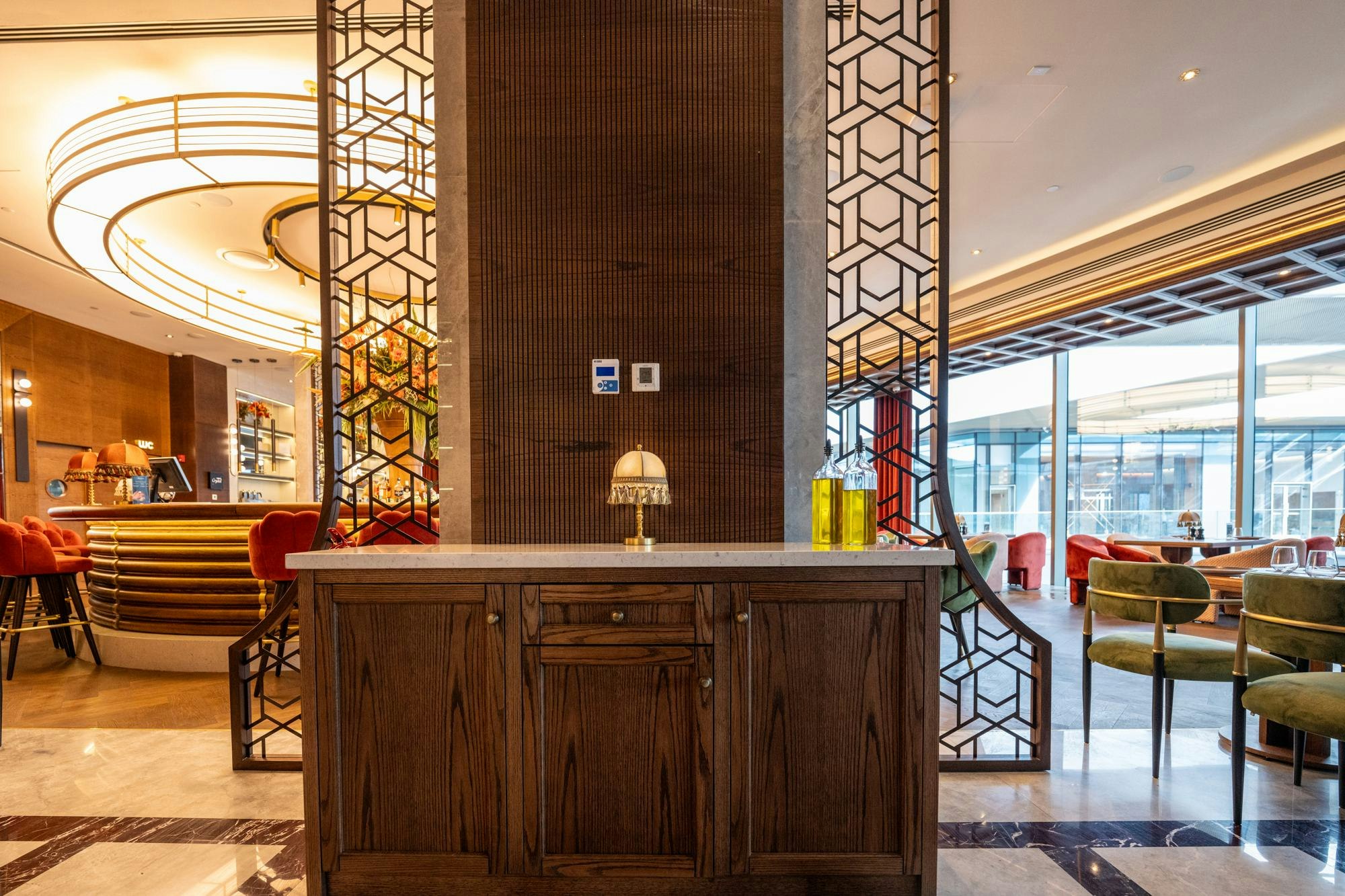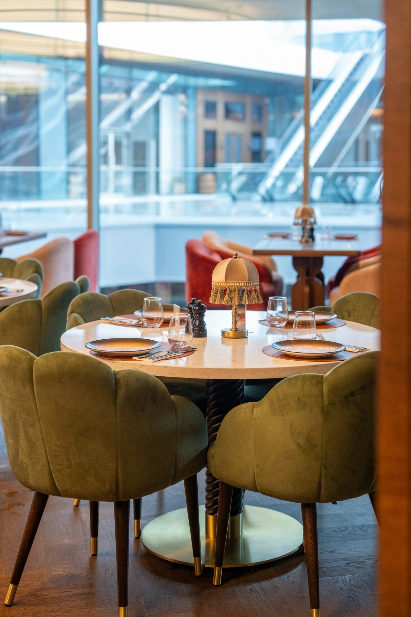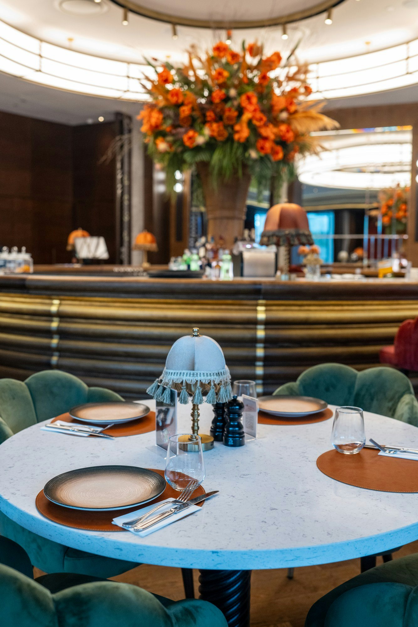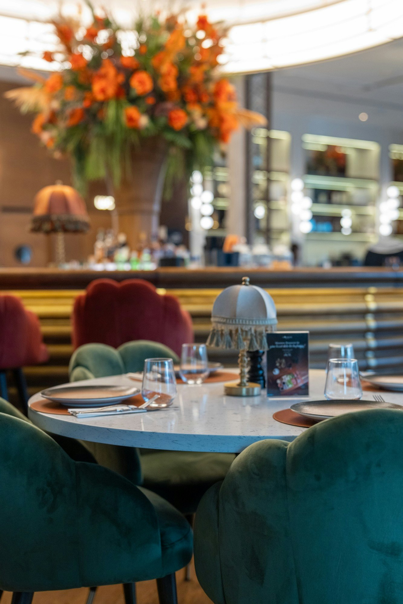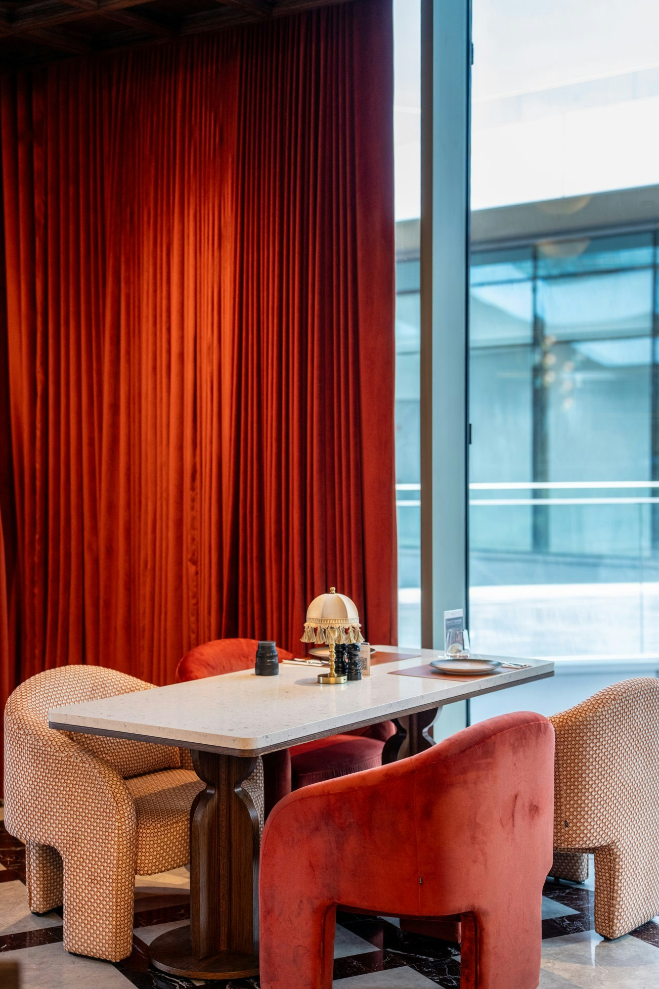 The design of Monreve Brasserie achieves a precise balance between the historical and the contemporary. Marble provides a noble and structured foundation; brass introduces warm and sophisticated reflections; and wood envelops the ensemble in a sense of timeless comfort.