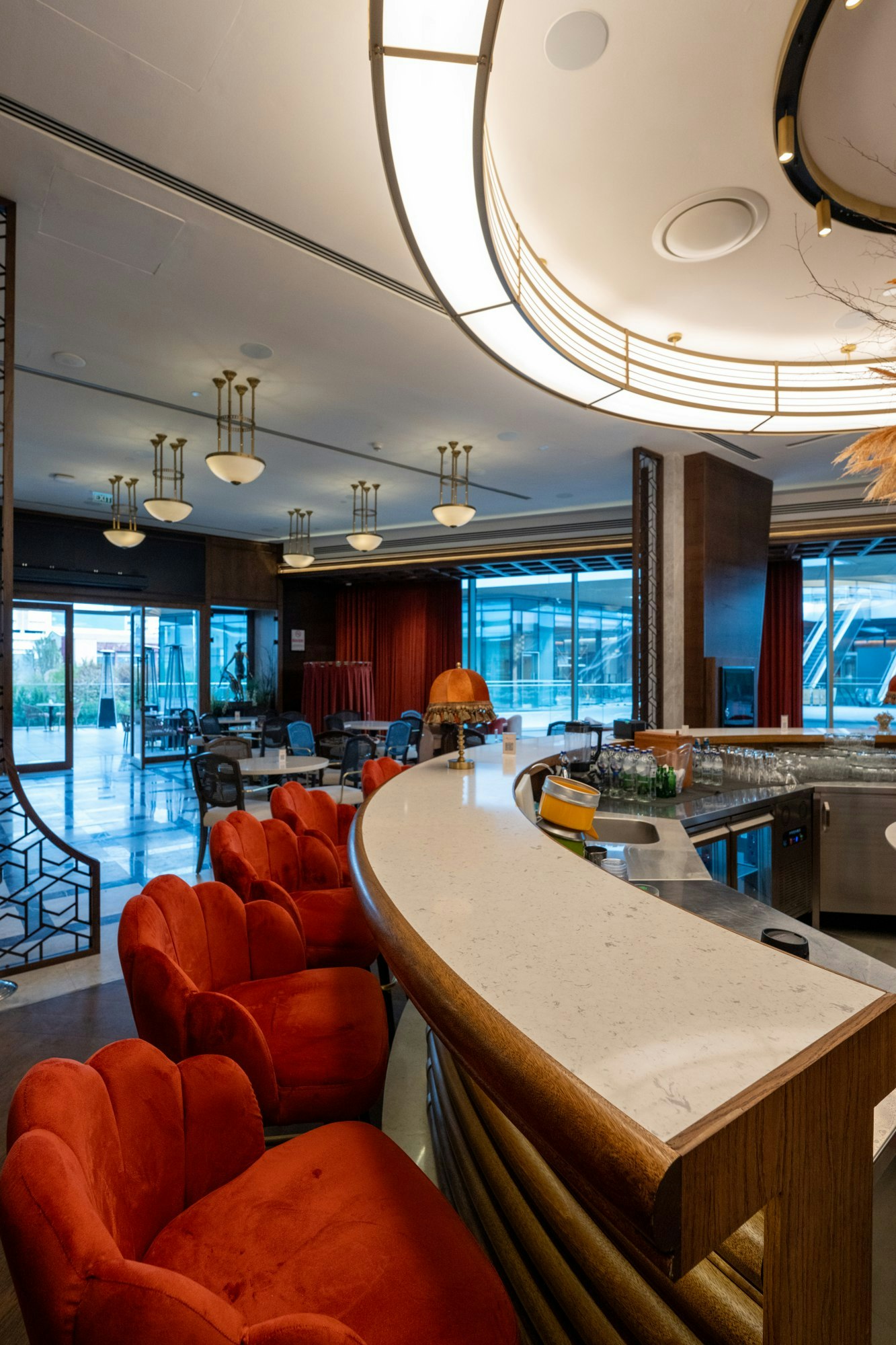 Located in Izmir, Turkey, this restaurant is a carefully orchestrated sensory experience. “The project is a reinterpretation of classic French culture with contemporary elegance. The Art Deco-inspired approach, enhanced by marble floors, brass details, and the warmth of wood, welcomes refined gatherings in a multi-layered atmosphere that transforms throughout the day,” explains the studio.