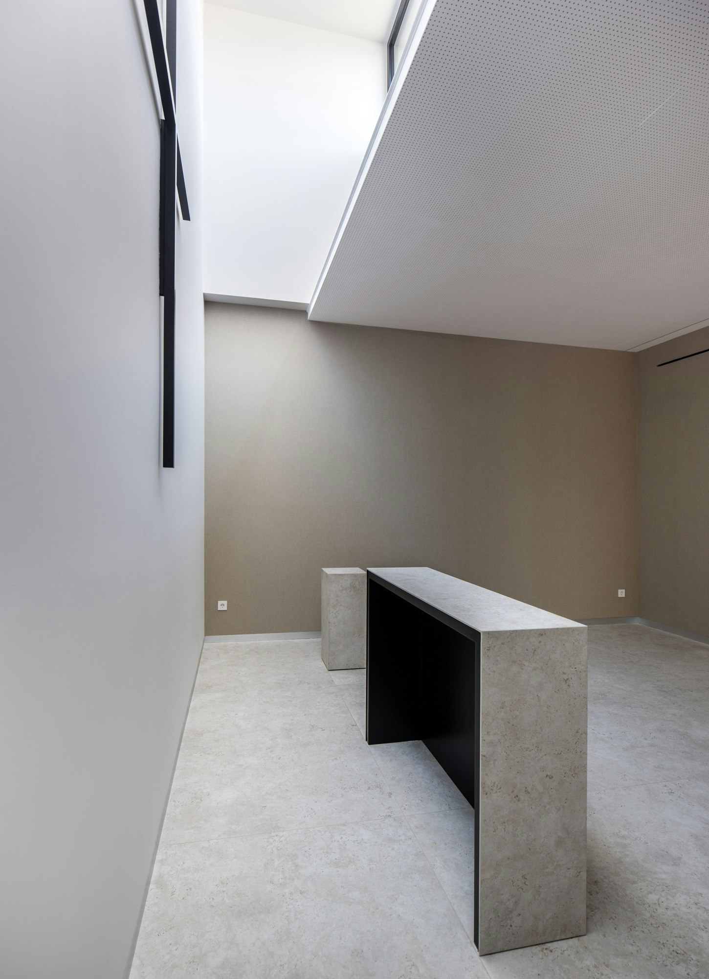 In contrast to the stone envelope, the centre's interior chapel is clad with Dekton Sabbia, introduced into the project as an ultra-compact surface material with a more nuanced colour language. Dekton Sabbia features veins that run through each piece in a random and 'colourful' manner, reinterpreting Italian travertine with a chromatic recoding that offers visual richness and advanced durability.