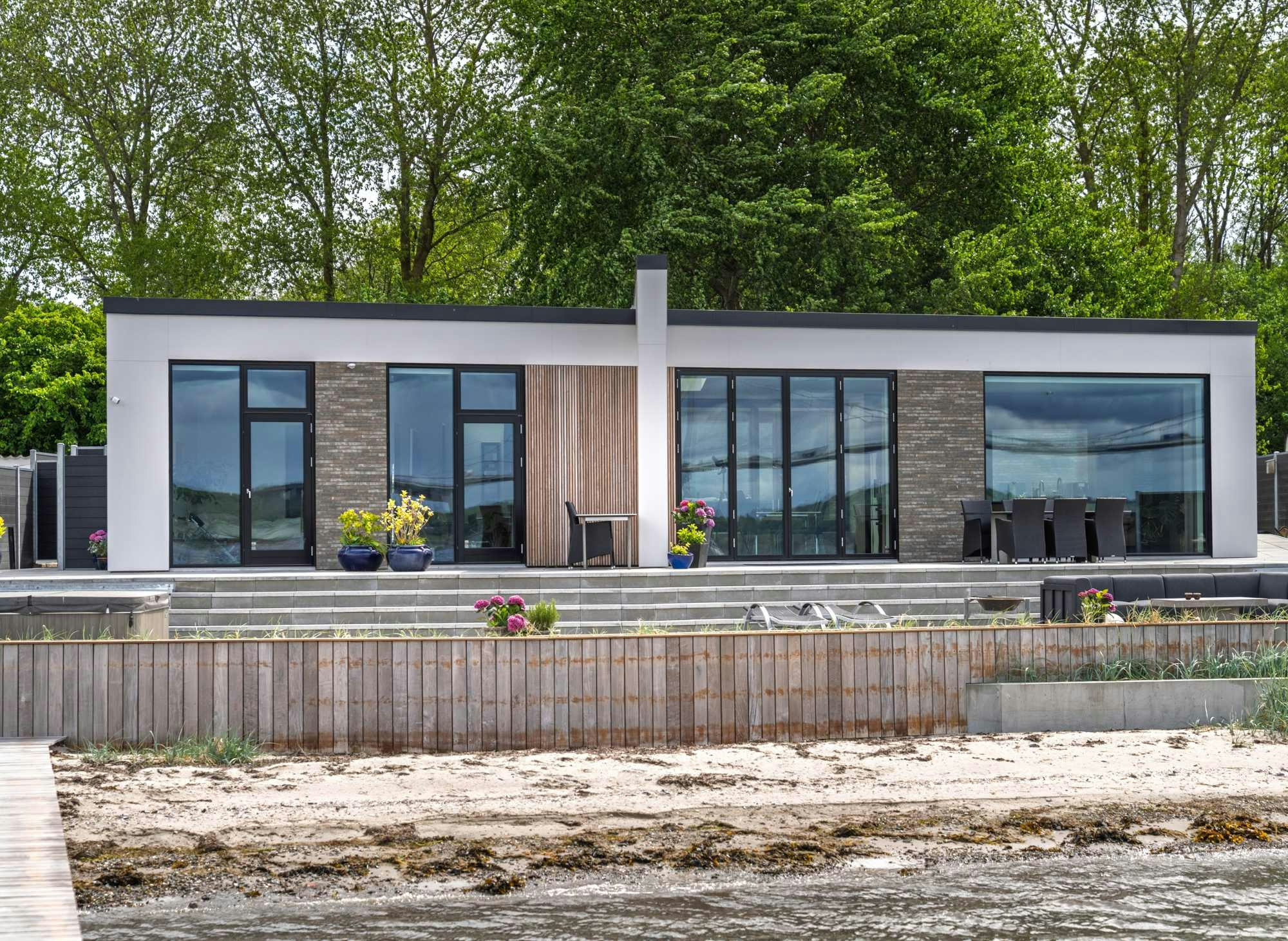 Located in a privileged setting, with direct access to the beach and open views of the Lillebaelt Strait, this newly built home in Middelfart successfully combines contemporary design with integration into the landscape. The project, designed by H+H Ejendomme, embraces an architecture of clean and understated lines, where materials play a key role in achieving a modern, timeless ensemble in harmony with nature.