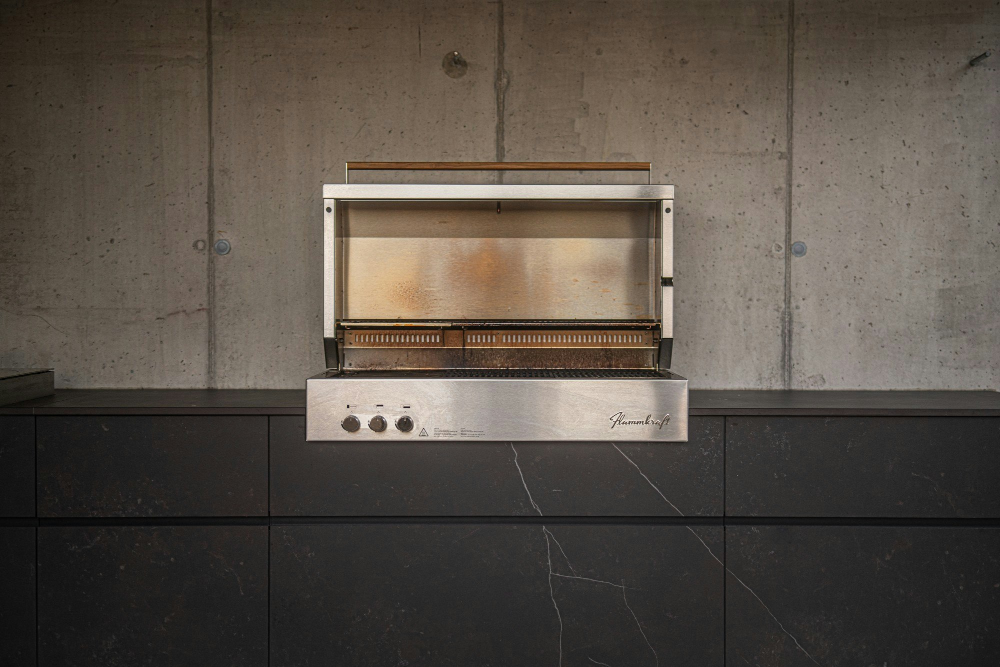 In a context like this, exposed to climate changes, oil splashes, hot utensils, and frequent use, the choice of Dekton is far more than a matter of aesthetics. “The greatest advantage in this space is its absolute indestructibility. The material is extremely durable, heat-resistant, and stain-resistant, which is a huge benefit when cooking frequently with hot oil, various ingredients, and heavy grills,” says Dragschitz.