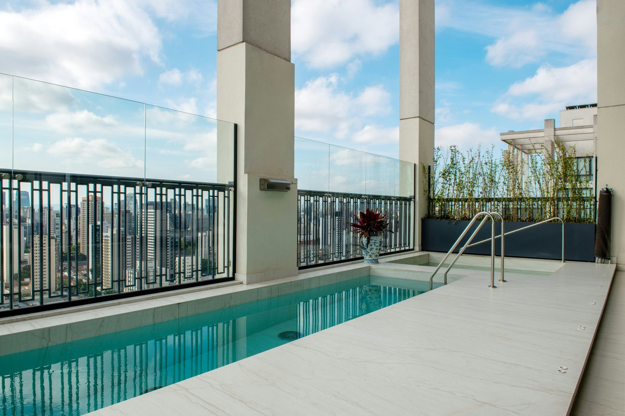 Worktop, splashback, cladding, flooring, pool, stairs