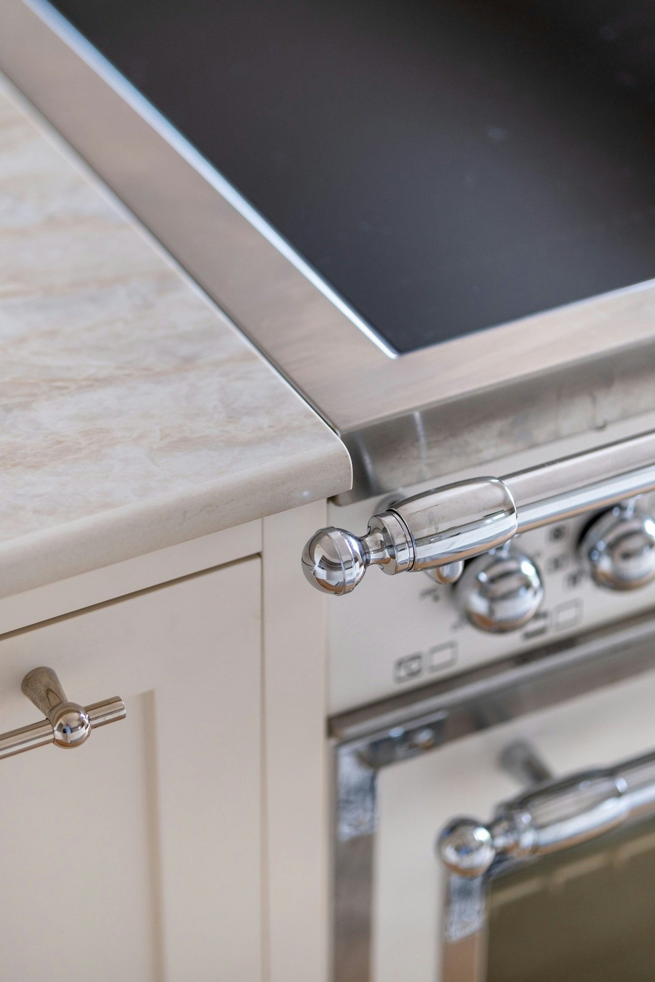 In the kitchen, the Dekton Arga surface, inspired by Taj Mahal quartzite, combines mineral warmth with durability, allowing pots and pans to be placed directly on the surface while ensuring effortless maintenance.