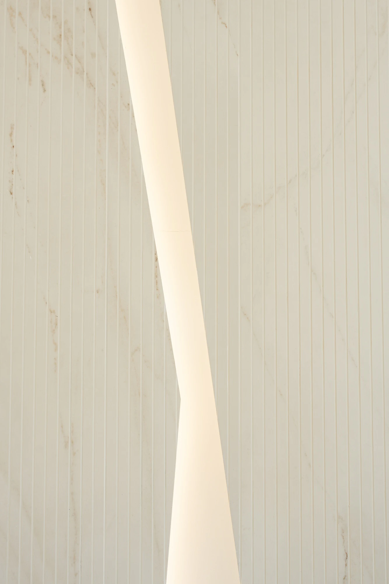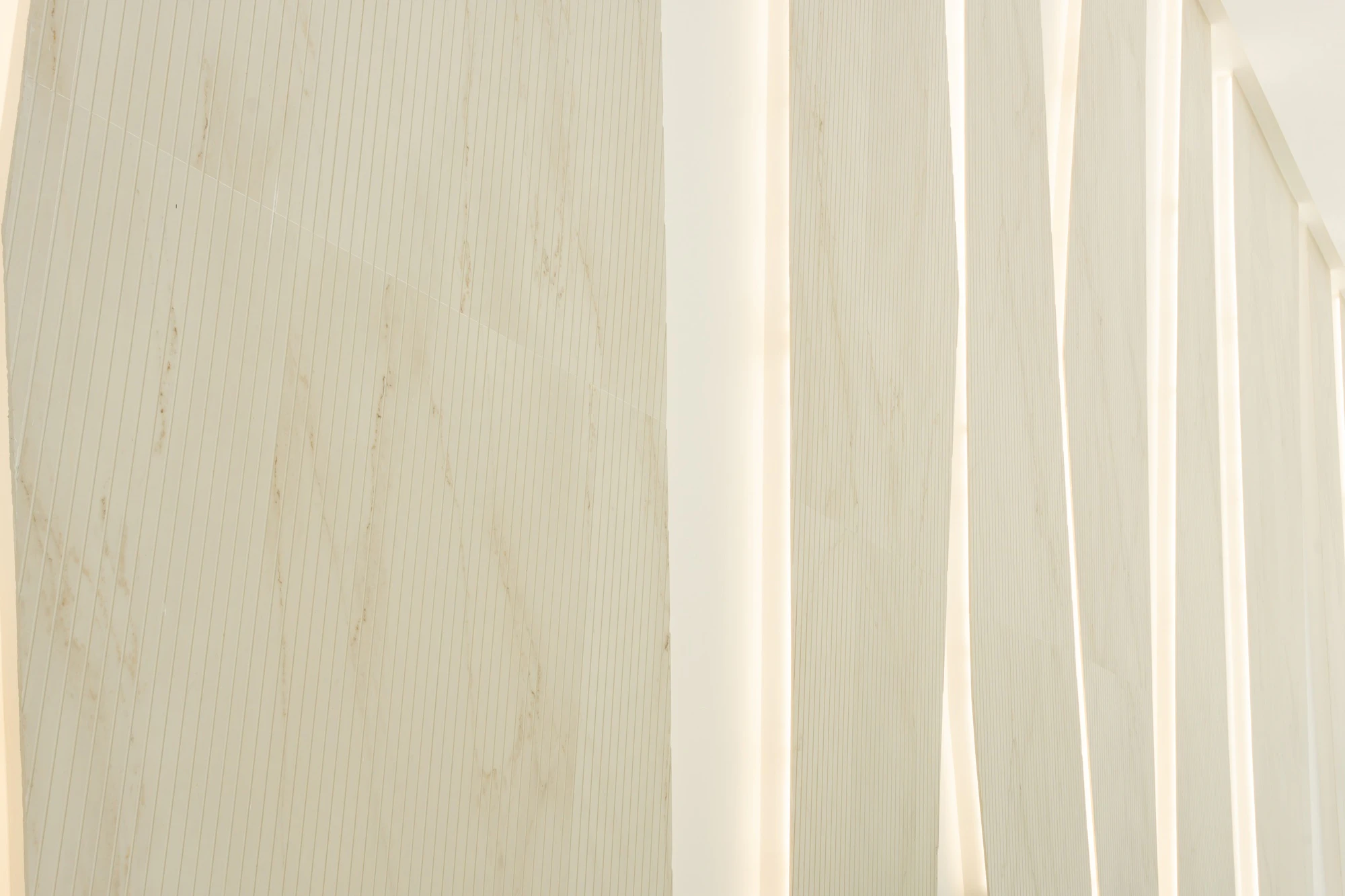 The crown jewel is undoubtedly the nine-metre-high Dekton Ukiyo Rem wall. Imposing without being excessive, this vertical plane adds character with its soft striations and a texture that interacts with natural light as if it were alive. The matte finish eliminates unwanted glare and provides a tactile sensation that invites closer inspection. In the words of Tahseen Amin himself: “The materials were chosen for their ability to interact with natural light and add depth to the white palette.”