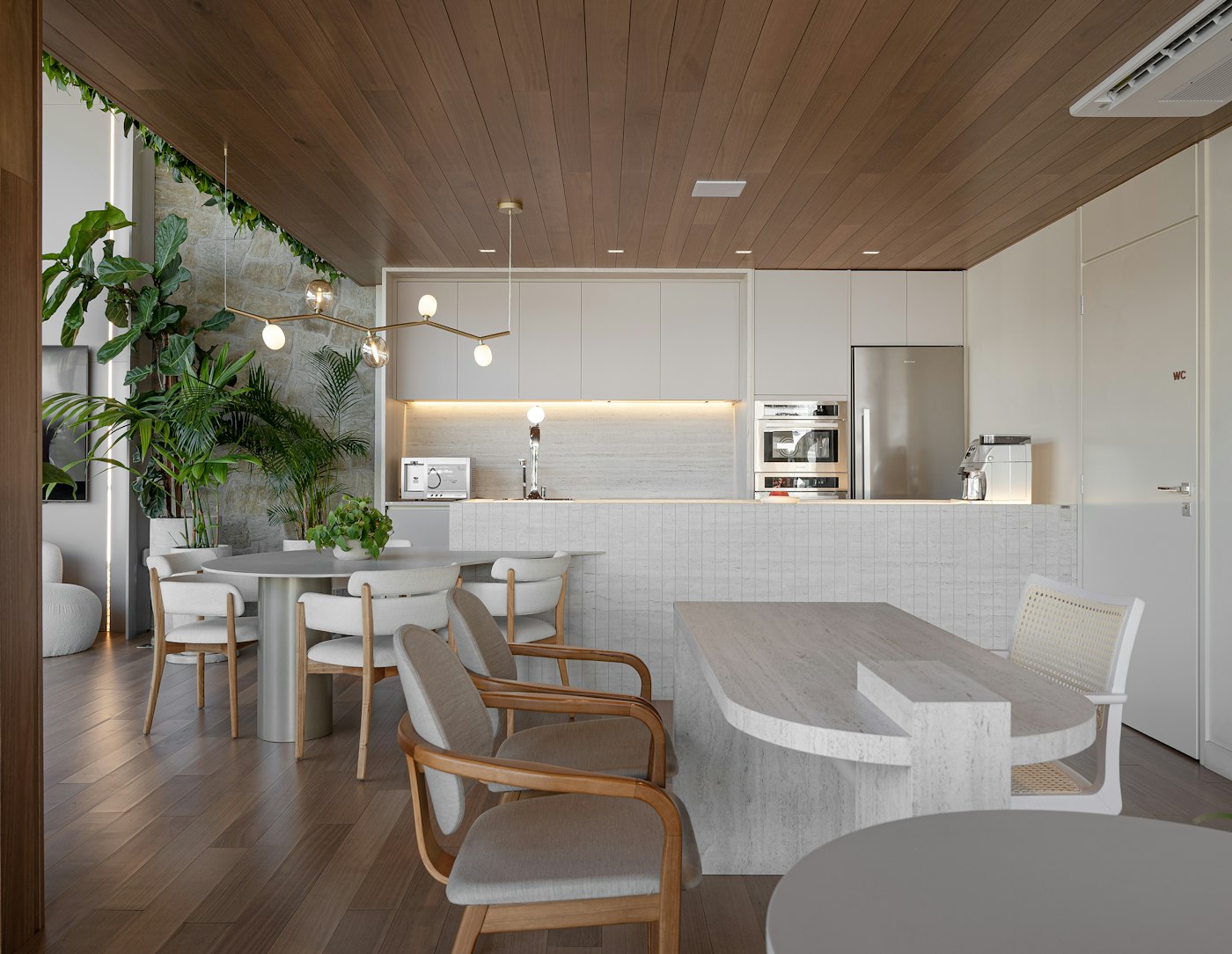 De licht gestreepte structuur met gevulde poriën die elk ontwerp een elegante, heldere en lichte uitstraling geeft, is geïnspireerd op Travertino Navona, een natuursteen die wordt gewonnen in de buurt van Tivoli, ten oosten van Rome.