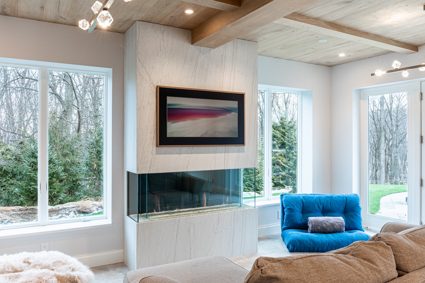 Een lichte crèmekleurige basis met fijne, bleke aderpatronen die door de marmering lopen, waardoor een fascinerend neuraal netwerk ontstaat dat in dezelfde richting beweegt.