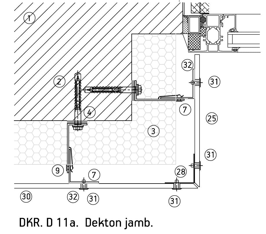 Dekton-delen kunnen zeer nauwkeurig voorgeboord worden geleverd, met boorgaten van 10 mm (7/32”), of ter plaatse worden geperforeerd, wat elke aanpassing die nodig is tijdens de gevelinstallatie vergemakkelijkt.)