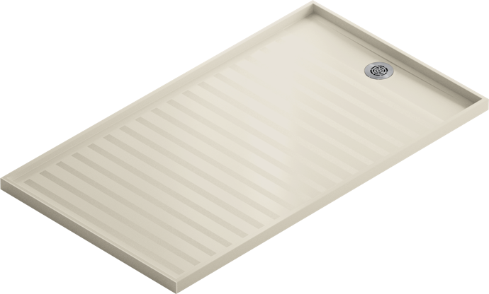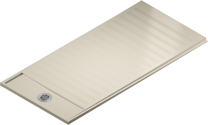 Een eenvoudig maar robuust design, met een vierwegafvoersysteem. De gestructureerde afwerking geeft de douchebak de beste antislip-eigenschappen.