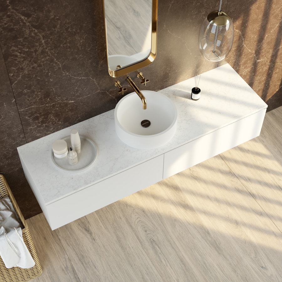 De Silestone TOP-wastafels worden direct op elk oppervlak geplaatst, zonder dat er bouwkundige aanpassingen of complexe installaties nodig zijn. Deze elegante en praktische oplossing biedt de vrijheid om materialen, hoogtes en stijlen naar wens te combineren. Zo ontstaan er nieuwe creatieve mogelijkheden om het ontwerp van uw badkamer volledig te personaliseren.