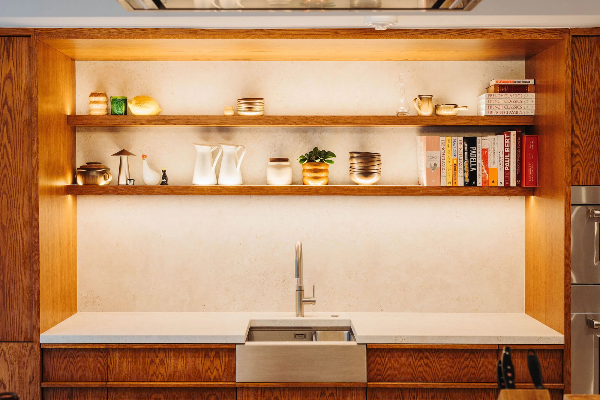 But the chef doesn’t live in the capital; he resides in the county of Berkshire. There, he has a house with a garden where he has designed his dream kitchen, which reflects much of the recipes he prepares: it is warm, welcoming, and somewhat classic, but with the robust and modern touch provided by high-quality appliances and cutting-edge surfaces like Dekton.