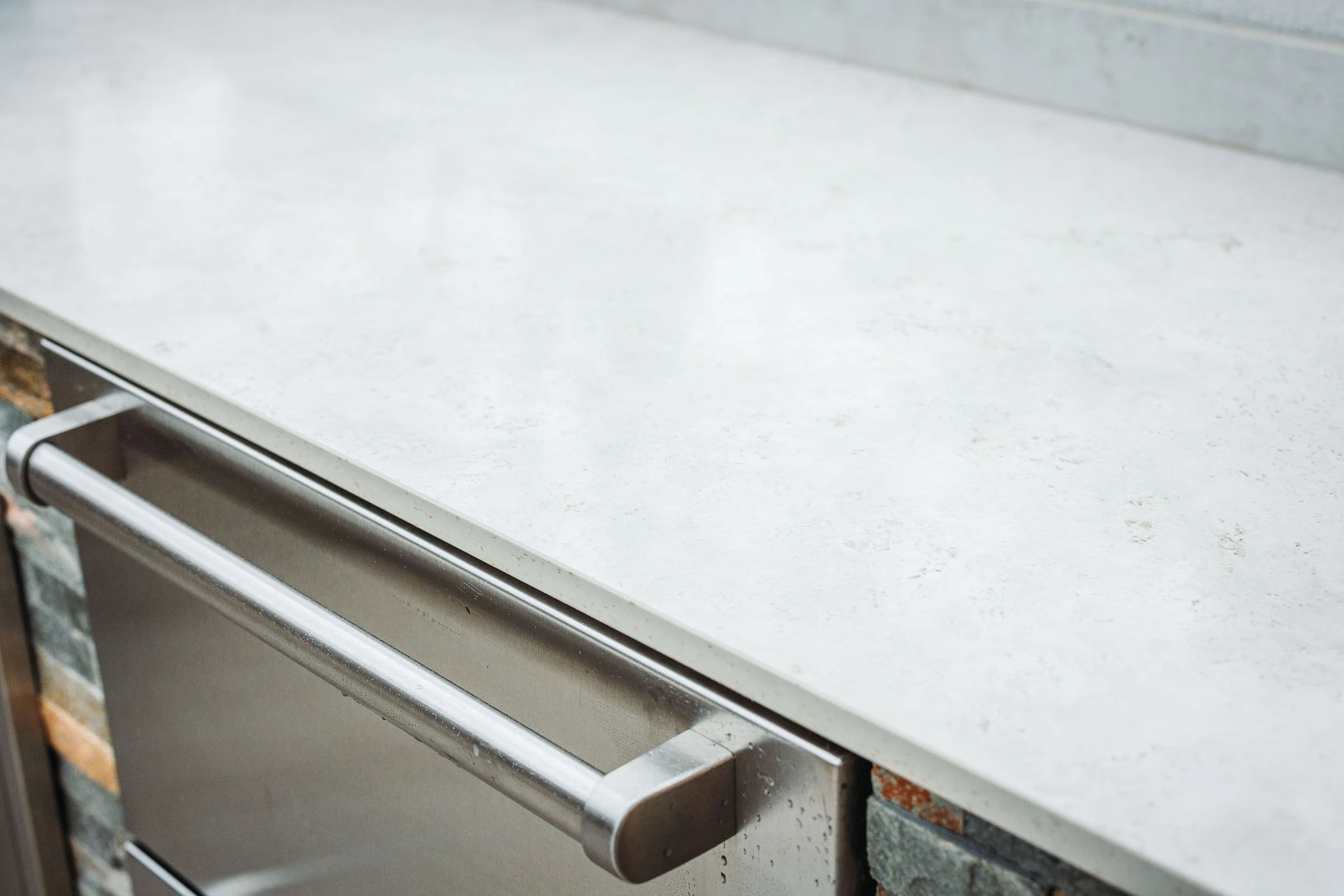 The choice of the same classic, soft, and textured tone for each application visually unifies the space and demonstrates the versatility of Dekton: its high resistance to stains, scratches, and high temperatures makes it an ideal material for a high-use kitchen, while its low water absorption and stability against UV radiation ensure optimal performance outdoors as well.
