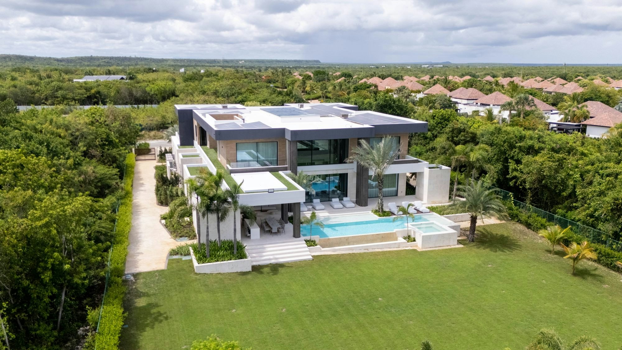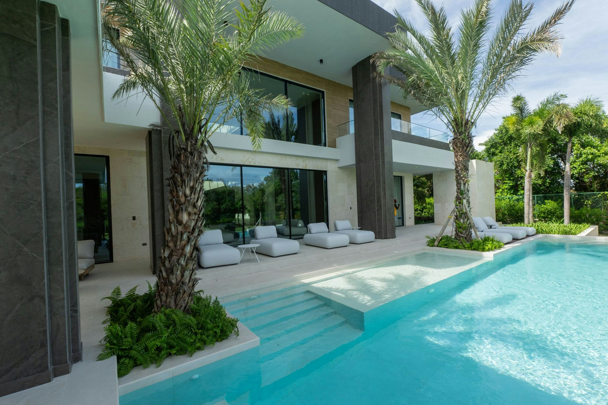 Villa Yarari is everything you could ask for in a Caribbean home. Located in Cap Cana, one of the most exclusive residential enclaves in the Dominican Republic, it is the perfect fusion of tropical lushness and elegant, functional architecture. The project, designed by Grupo Sacovex, features clean and open volumes that organise the home around light, the garden with a pool, and the spatial continuity between interior and exterior. From the entrance to the terraces, everything is articulated through horizontal planes and large windows that extend the house towards its expansive private green area.