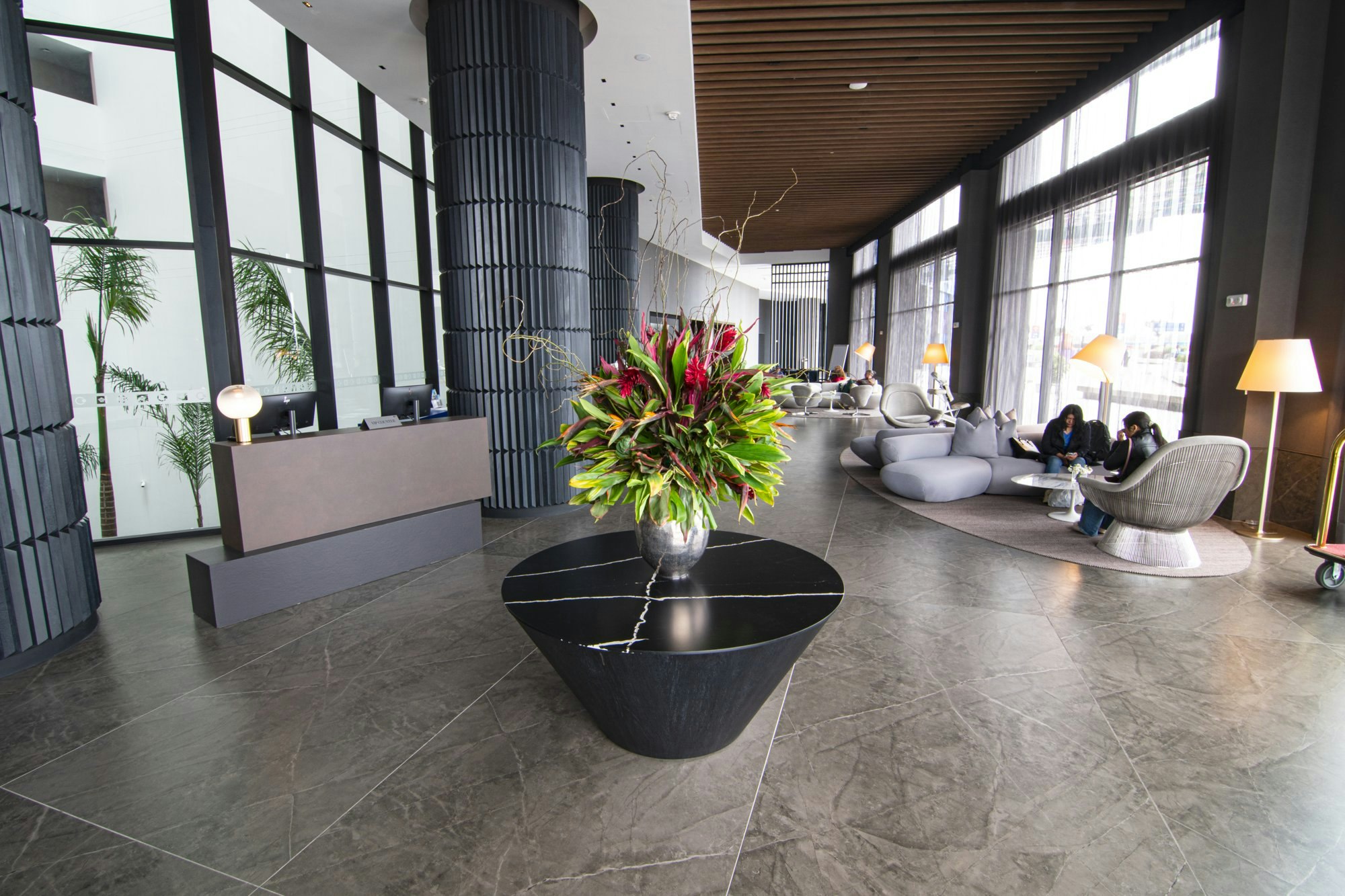 The Wyndham Costa del Sol hotel at Lima Airport (Peru) is a modern four-star establishment offering all the comforts for both transit travellers and those wishing to visit the city. Its contemporary and functional interior design, led by designer Renzo Cordano, includes subtle references to Peruvian identity. Given the high foot traffic in the space, Cordano chose durable and easy-to-maintain materials, relying on Dekton surfaces for various applications.