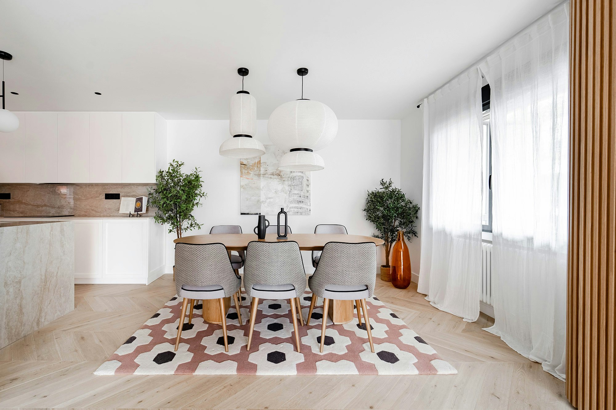 For this purpose, the architect chose elegant and durable materials that give the project a sophisticated and refined touch. “Oak wood to give warmth to the floors, kitchen and fireplace; different finishes of Dekton in the kitchen and the fireplace for durability and character; and natural fabrics and furniture in neutral tones to create an atmosphere full of calm and elegance”, explains the architect.