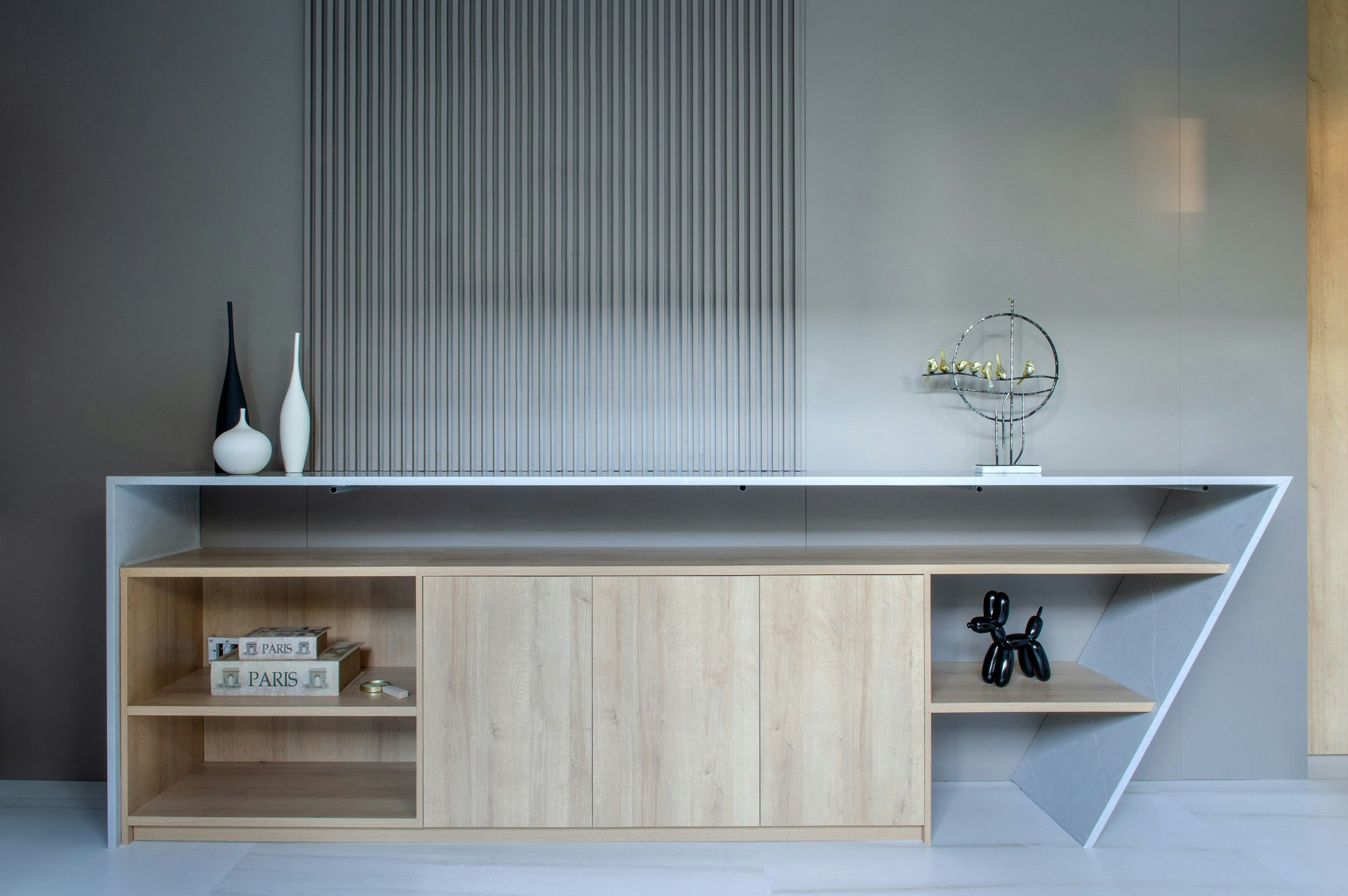 Nas áreas de maior uso, Dekton se torna protagonista graças à sua resistência, estética contemporânea e capacidade de se integrar com outros materiais naturais. Para a bancada e a ilha da área gourmet, a arquiteta escolheu Dekton Kovik, em placas de 12 mm, por sua versatilidade e harmonia cromática. Sua textura suave e tom acinzentado oferecem uma base neutra que se adapta ao restante do design de interiores, enquanto proporciona a durabilidade e resistência necessárias para um espaço de interação constante e preparo de refeições.