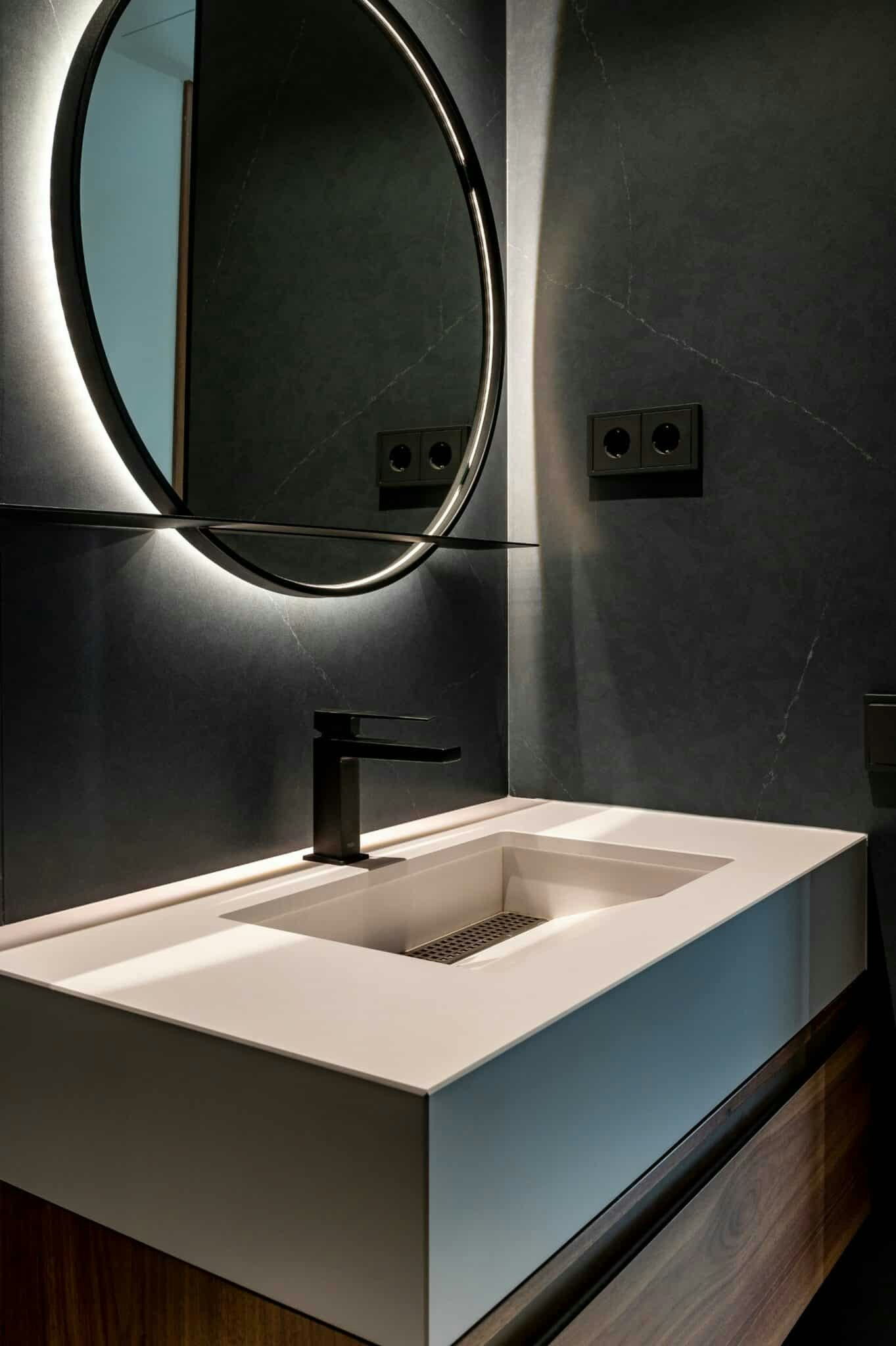 Finally, in another of the four bedrooms, an island washbasin in Silestone Blanco Zeus becomes a harmonious totem-like sculptural set.