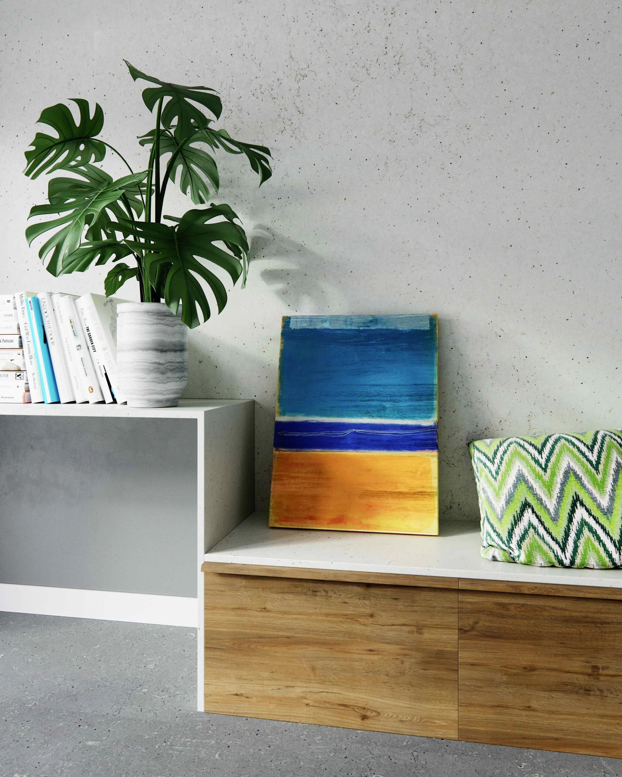 O tom cinza do Concrete Pulse é perfeito para interiores ecléticos, adicionando um efeito contrastante e vibrante. Este tom cinza natural fica ótimo tanto na luz quanto na sombra. É o melhor pano de fundo para complementar com acessórios atraentes e destacar detalhes.