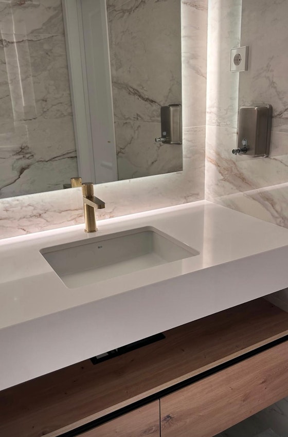 Encimera en blanco Zeus para unas oficinas en Madrid
