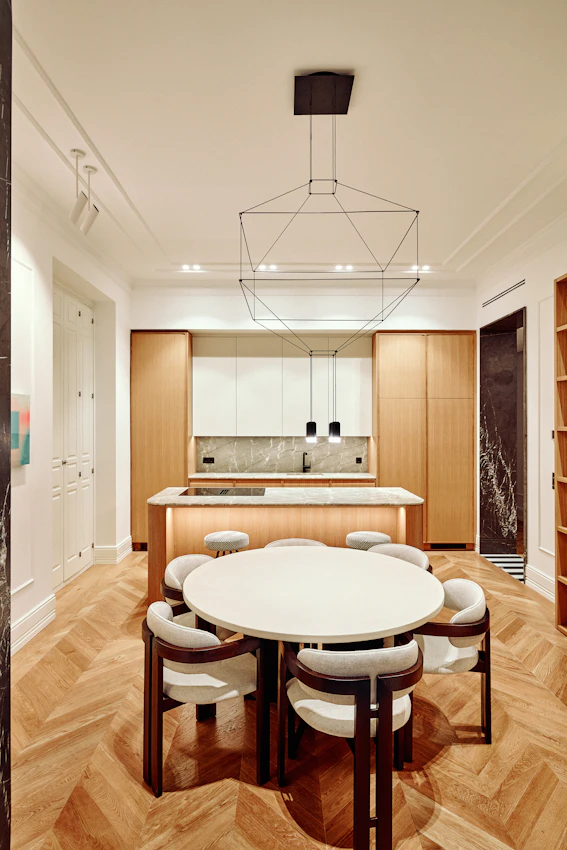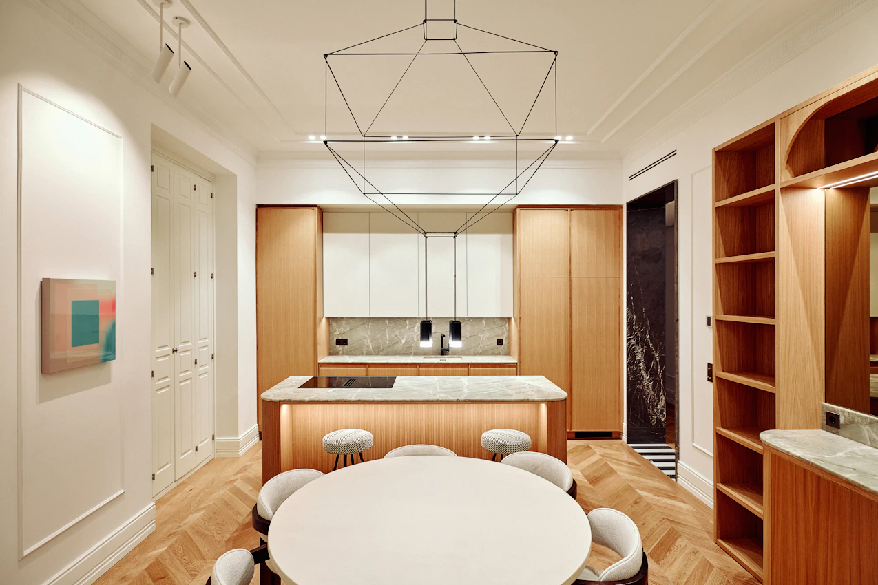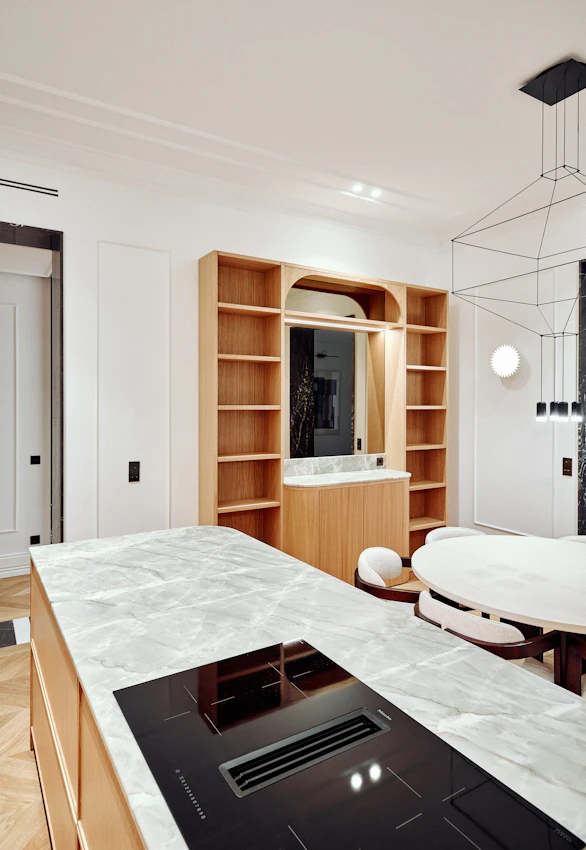 A very 'arty' house where everything revolves around the kitchen.