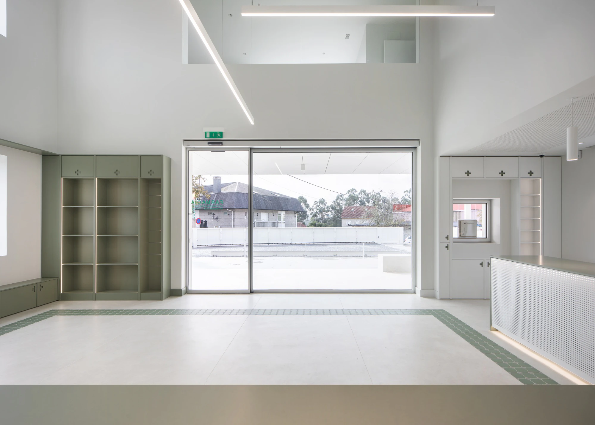 This project marks the beginning of the studio's use of Cosentino materials, and the result has been so successful that they have also been used in two of the most striking and central elements of the pharmacy: the dispensing counter and the laboratory worktop. In this case, the chosen material was Silestone in Posidonia Green.