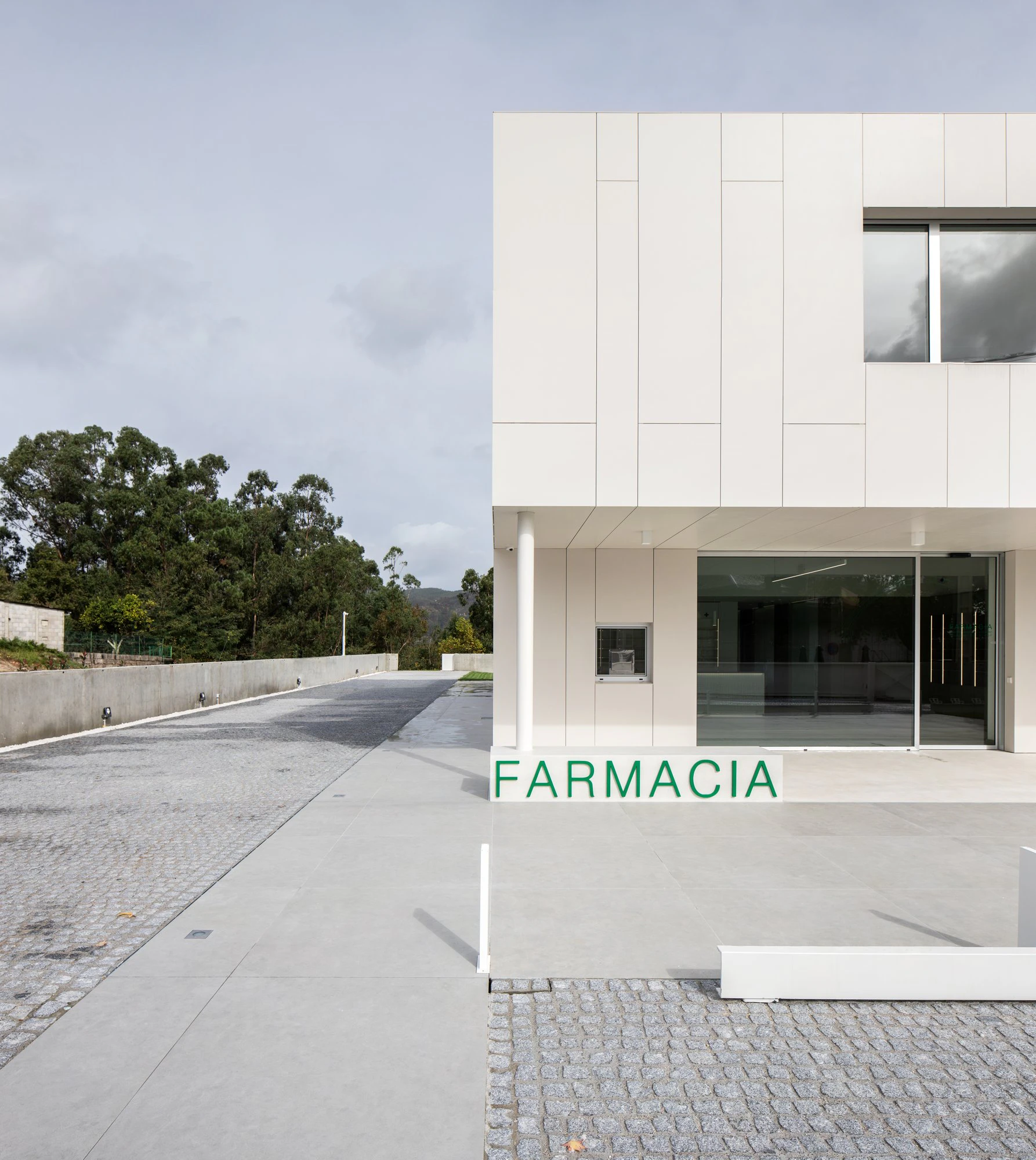 It is uncommon for a pharmacy to be located in a standalone building with two full floors, rather than in a commercial ground floor. However, this is the structure of the newly inaugurated pharmacy in the municipality of Salceda de Caselas (Galicia), where the use of Dekton and Silestone creates a seamless connection from the façade to the interior surfaces.