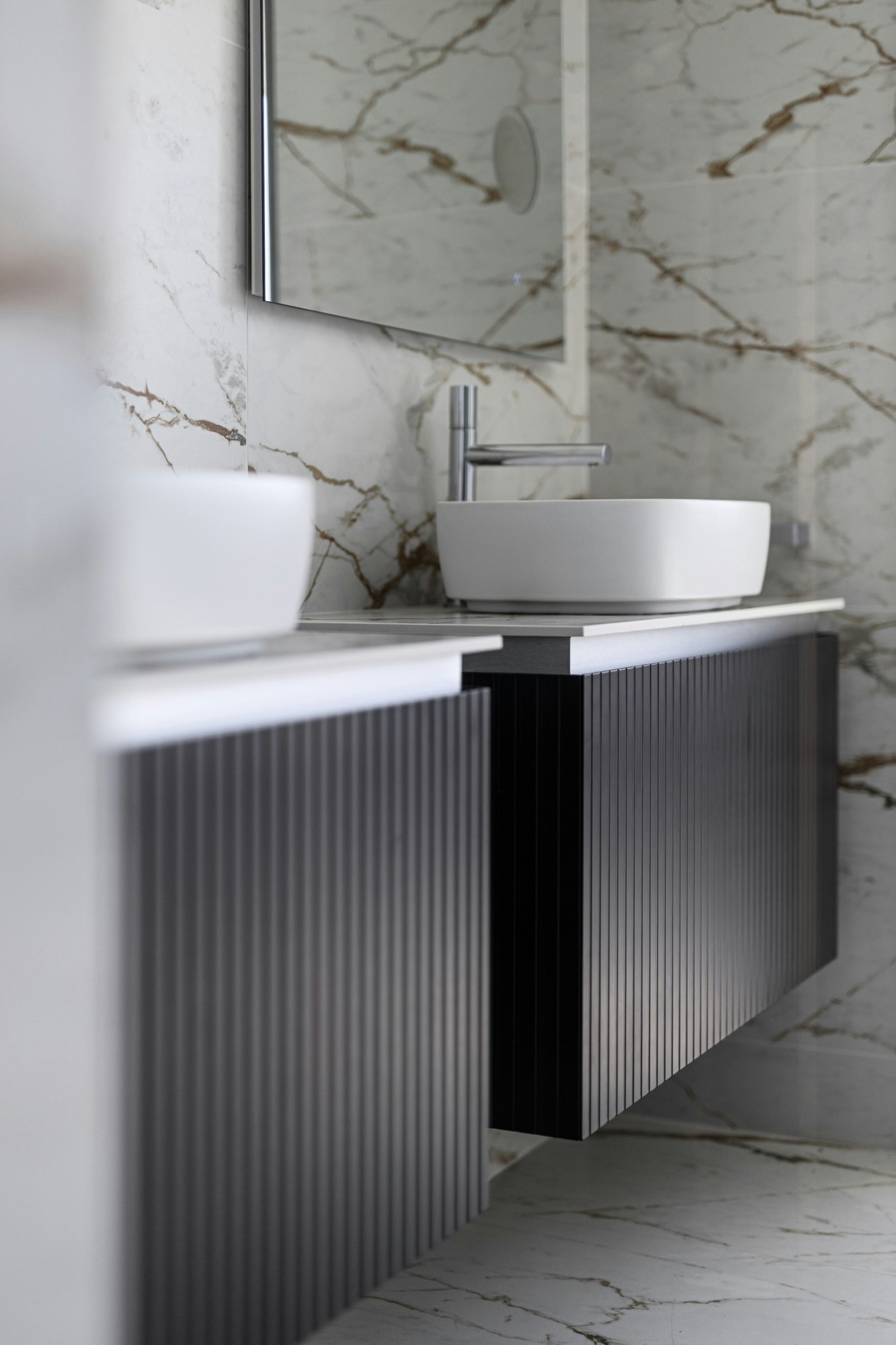 The interior maintains aesthetic coherence thanks to the use of Dekton in various rooms. In bathrooms, the ultracompact surface covers floors and walls with the colours Dekton Daze and Dekton Reverie, bringing brightness and serenity to the space.