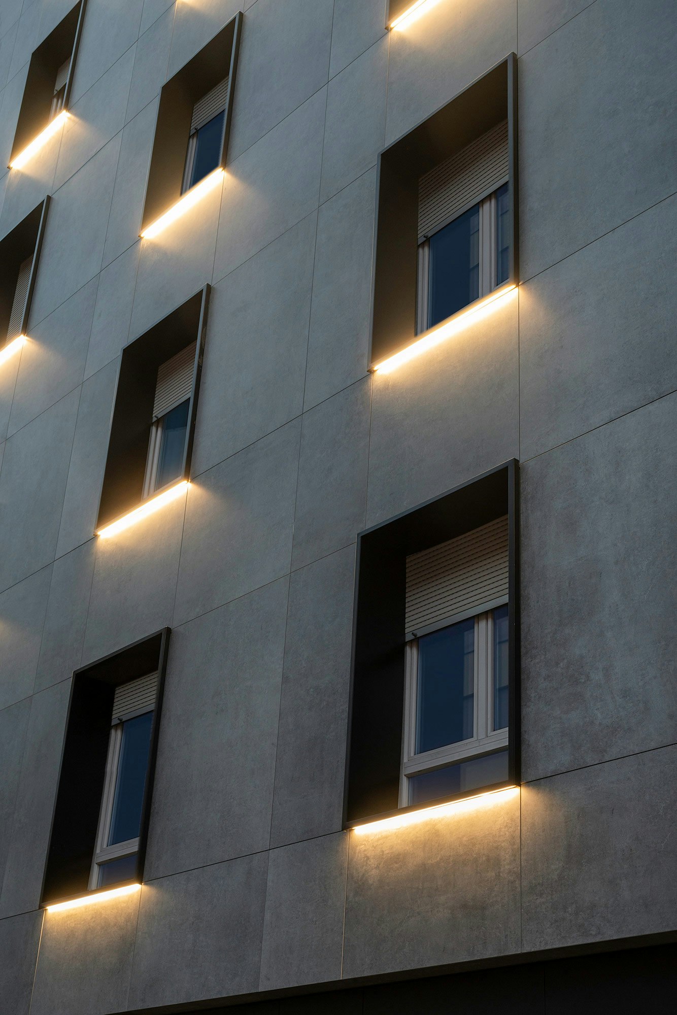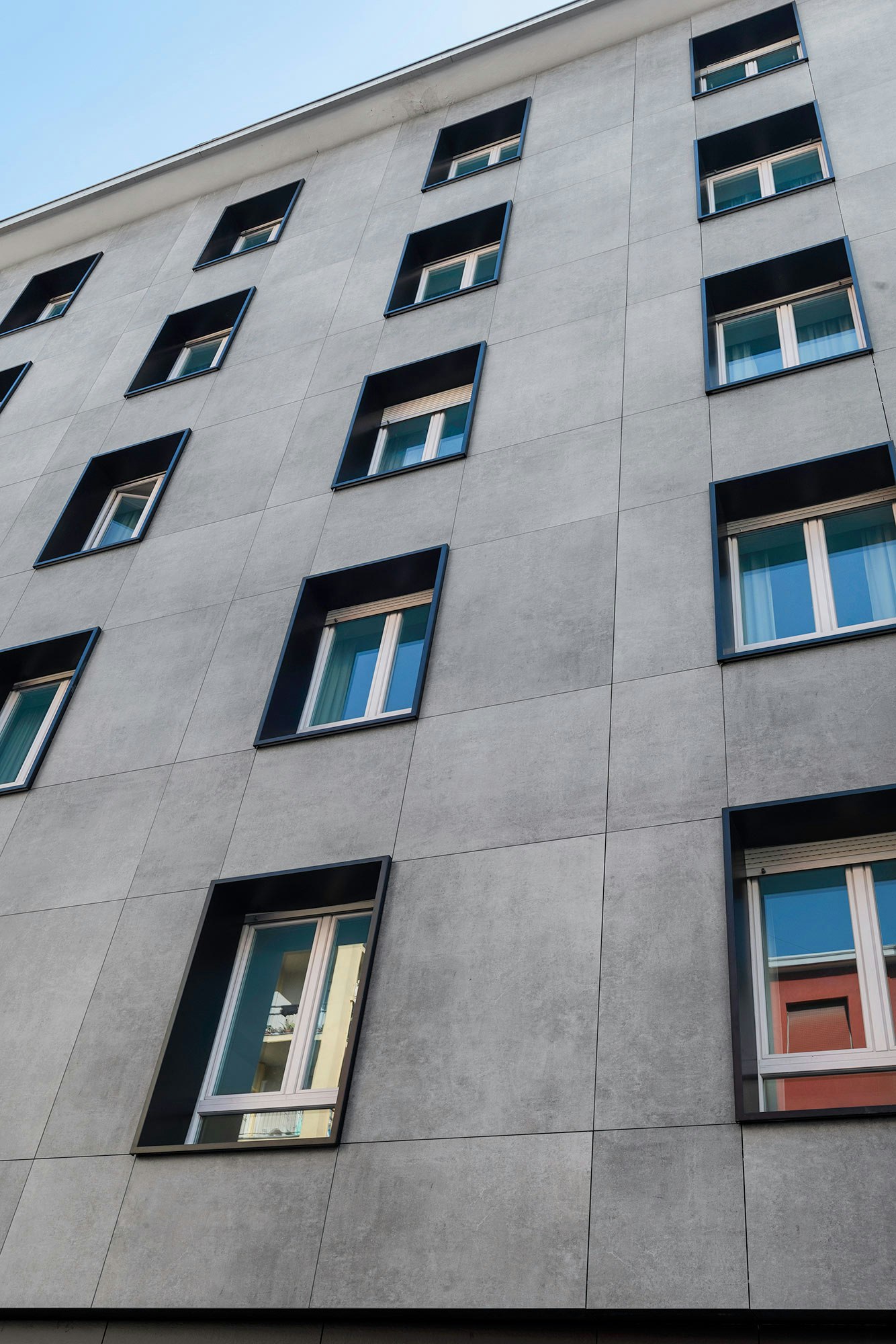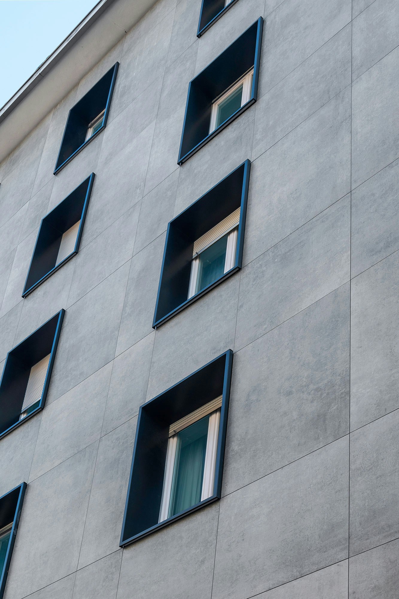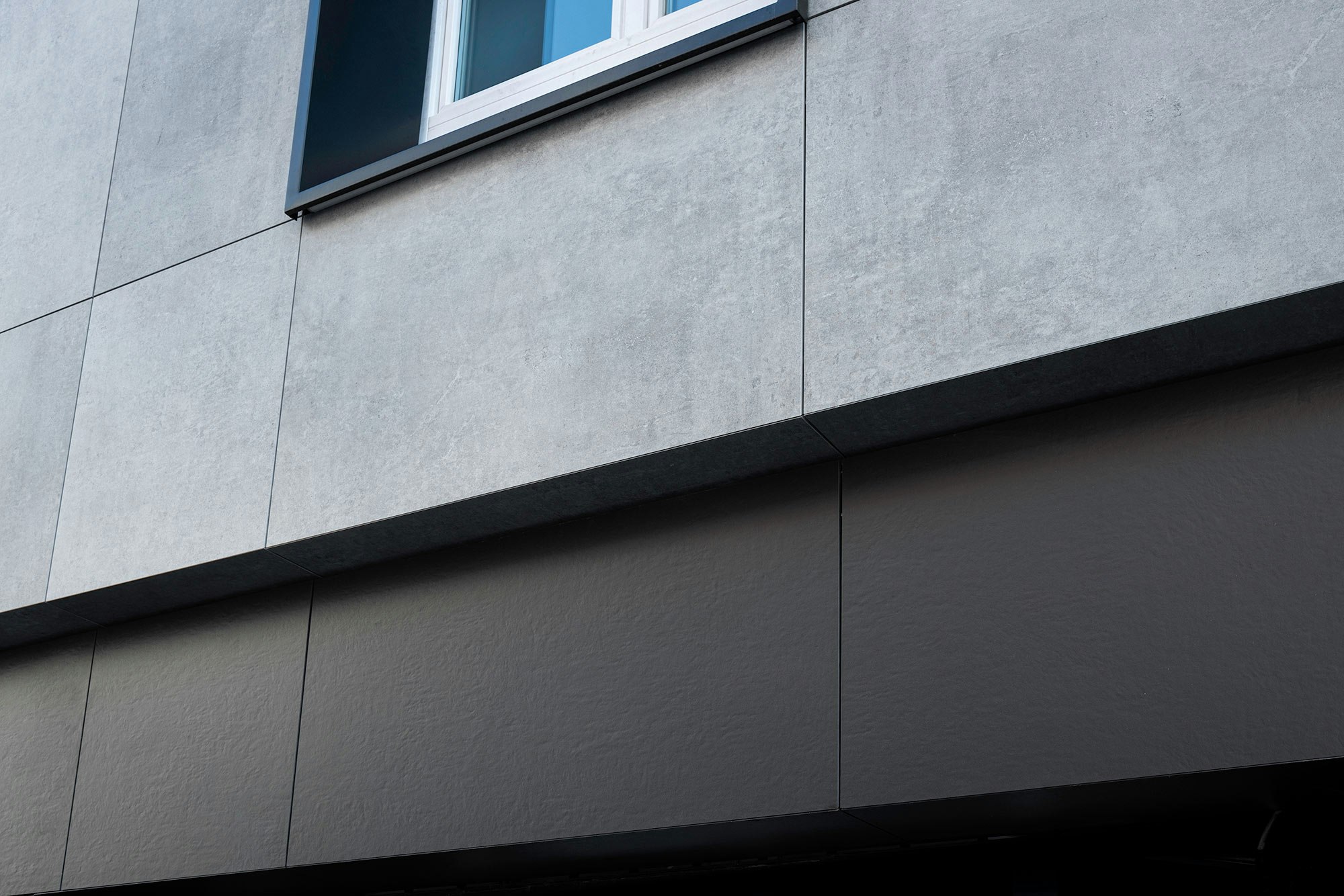 “This colour contrast also adds visual depth to the façade, highlighting the contours of the slabs and creating a modern feel. The metal elements are smooth and uniform, giving the façade a clean and minimalist look.”
