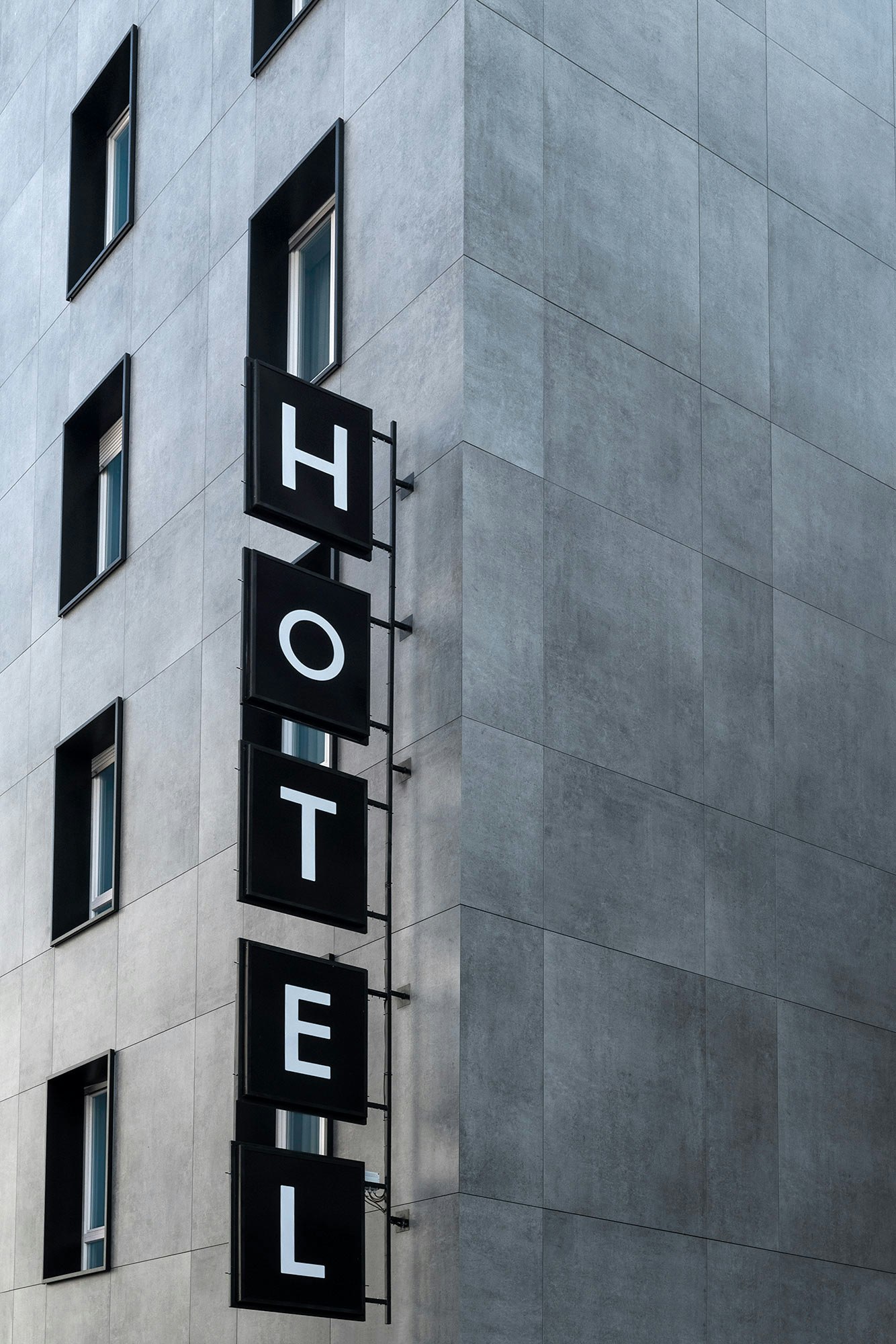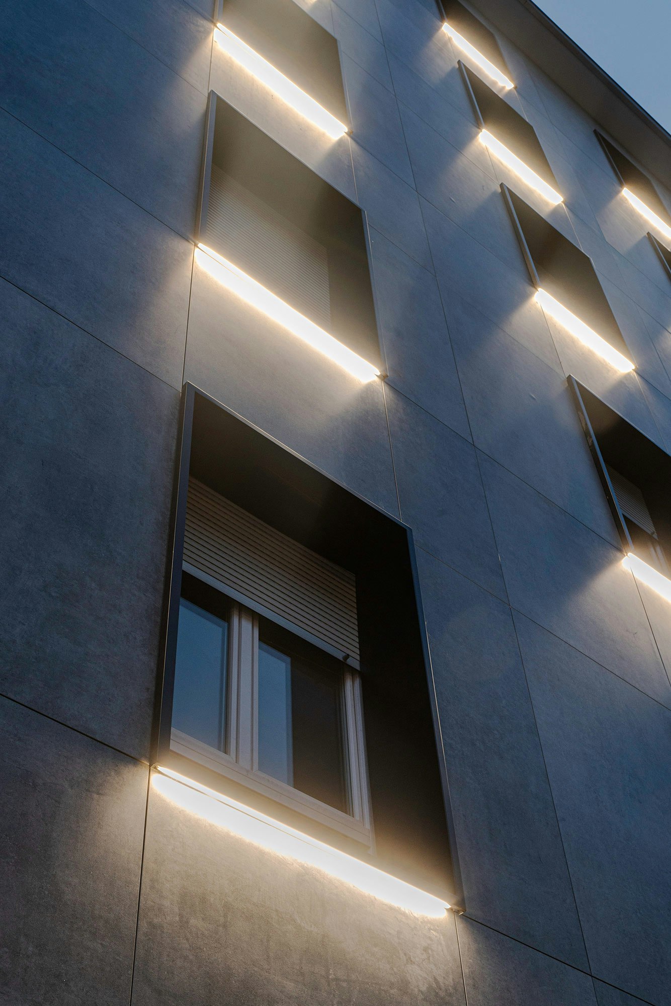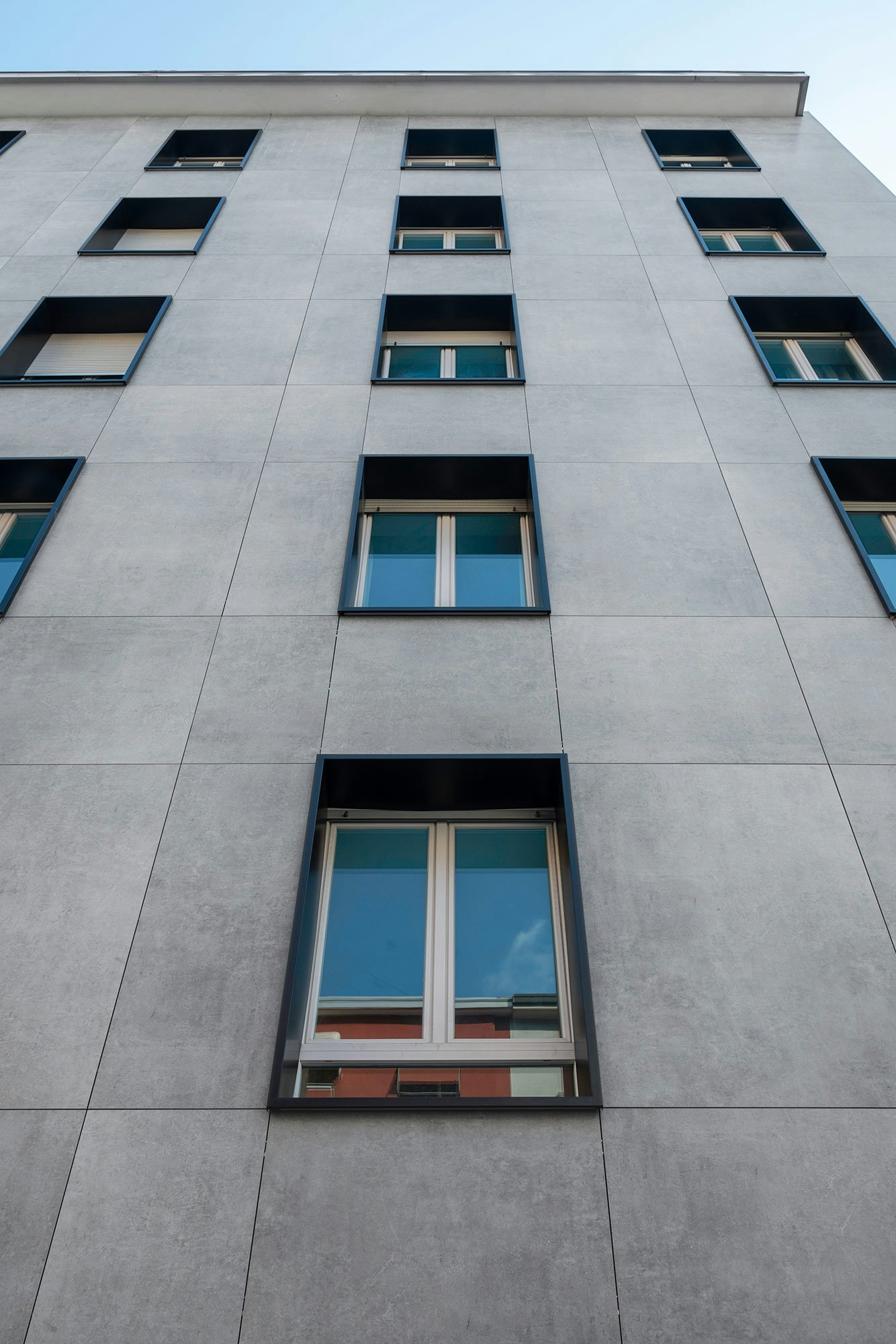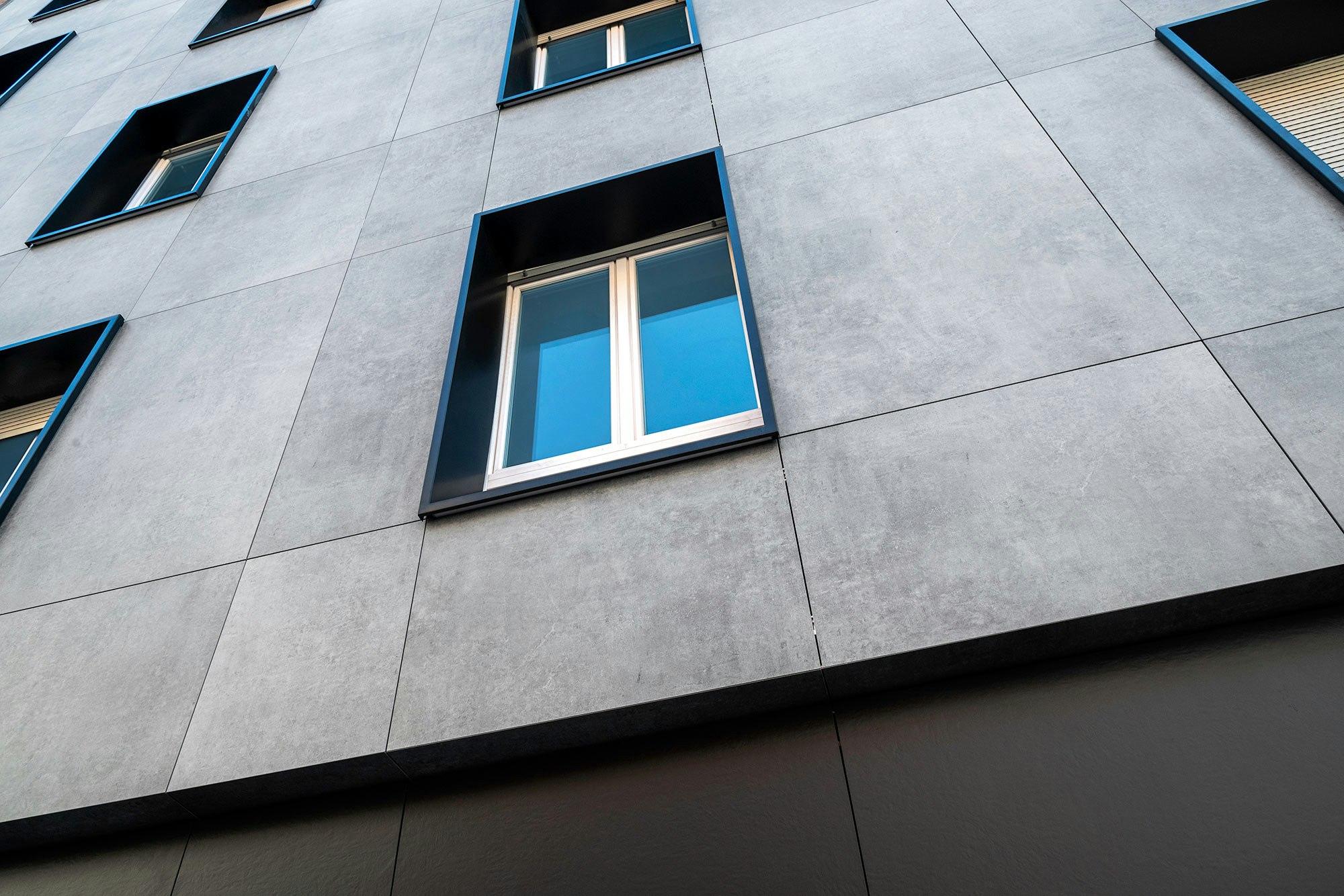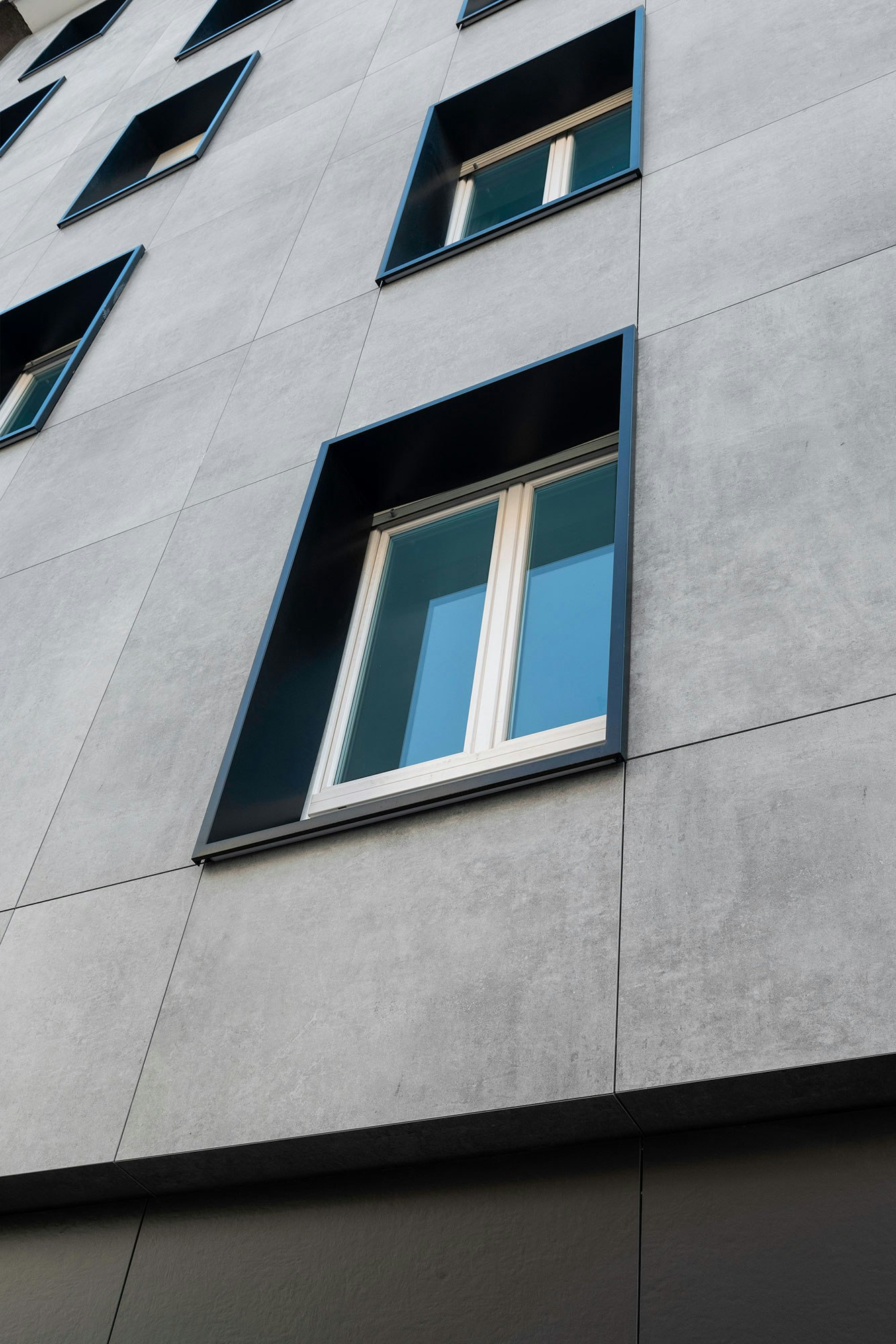 “This colour contrast also adds visual depth to the façade, highlighting the contours of the slabs and creating a modern feel. The metal elements are smooth and uniform, giving the façade a clean and minimalist look.”