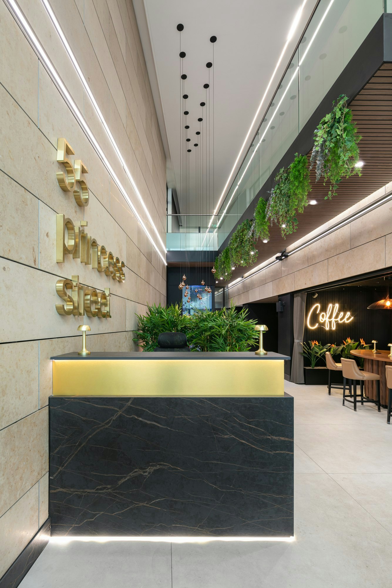 Some buildings need more than just a 'facelift'. 55 Princess Street, located in the heart of Manchester, required a renovation that not only updated its appearance but also met the demands of a high-traffic commercial space. The design team's response was clear: to opt for surfaces capable of withstanding heavy use without compromising on an elegant and contemporary finish.