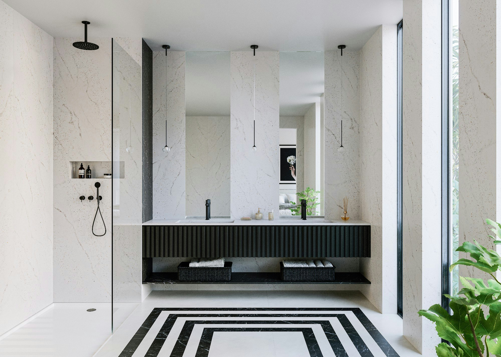 - Dream bathrooms: a bathroom with a veined cladding is synonymous with refinement and relaxation. From washbasins and countertops to shower wall claddings, every detail becomes a unique and sophisticated sensory experience.