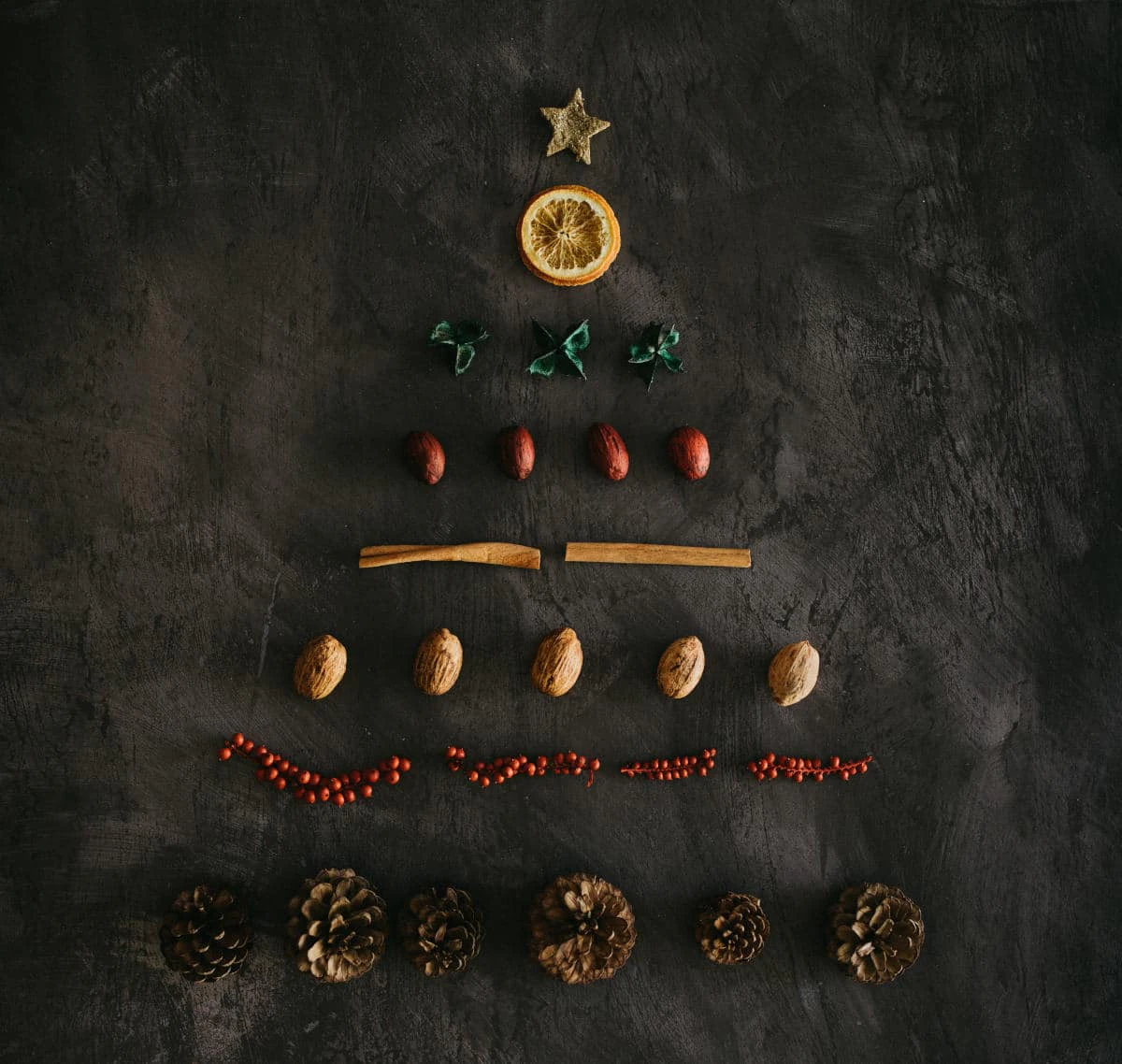 If you’re a creative type who loves to innovate, you could also decorate with kitchen utensils or even food: red-and-white striped candy canes, biscuits in the shape of a Christmas tree or baskets of nuts.