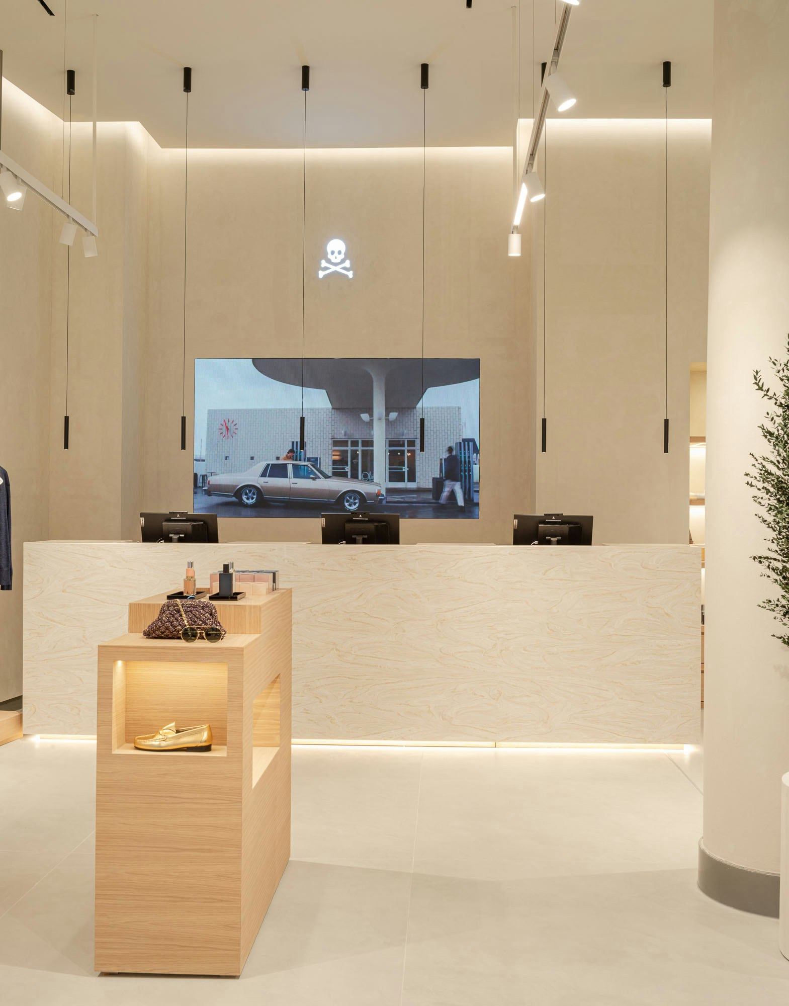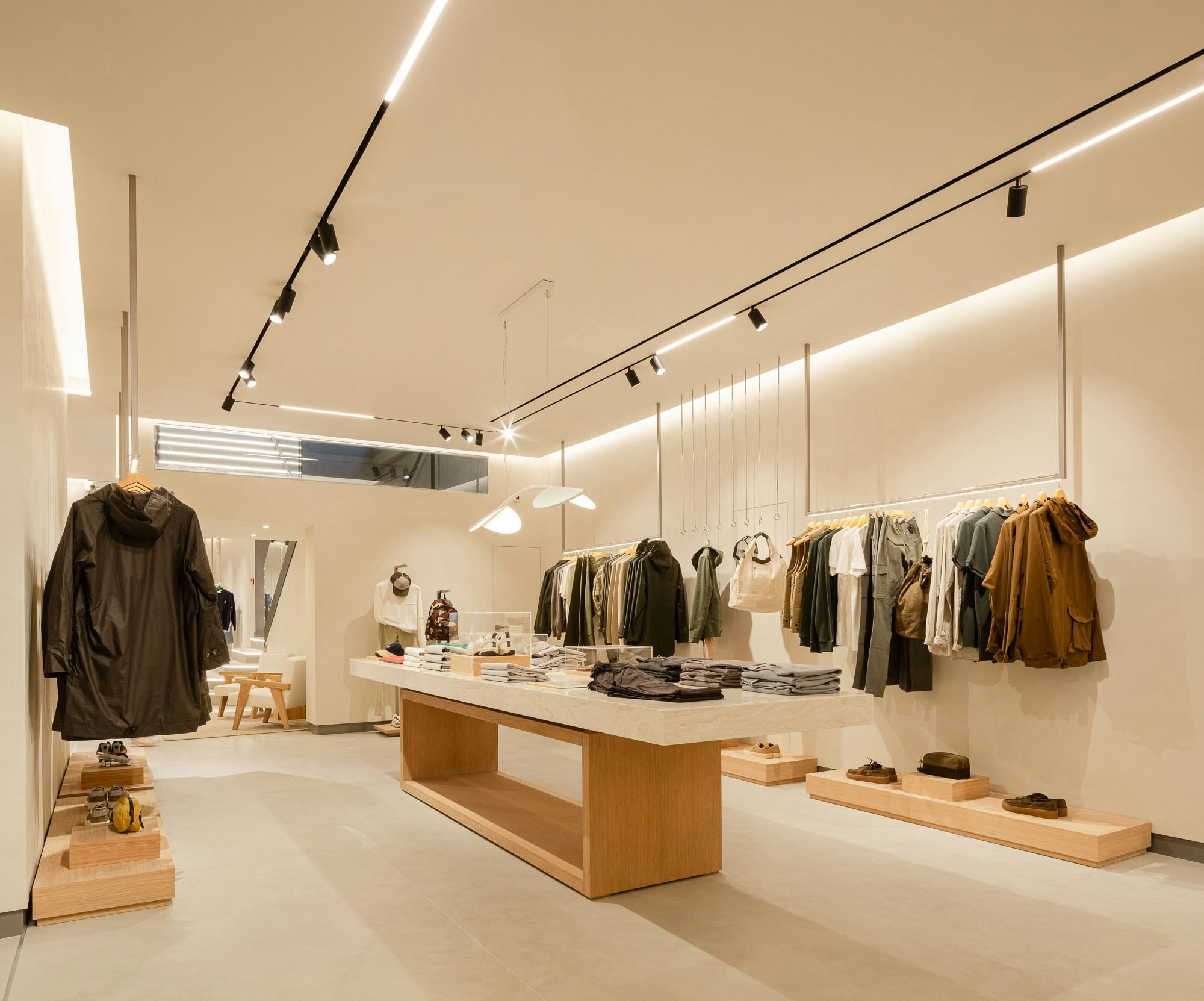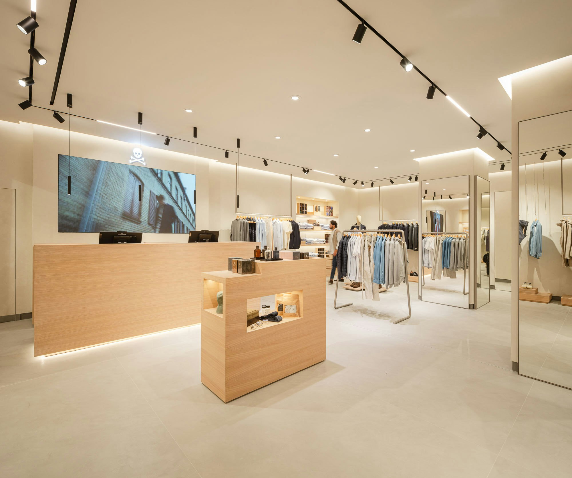 The interior design concept of Scalpers shops seeks simplicity, neutrality, elegance and innovation through the use of a few neutral materials, bringing a touch of distinction to the product and the brand.