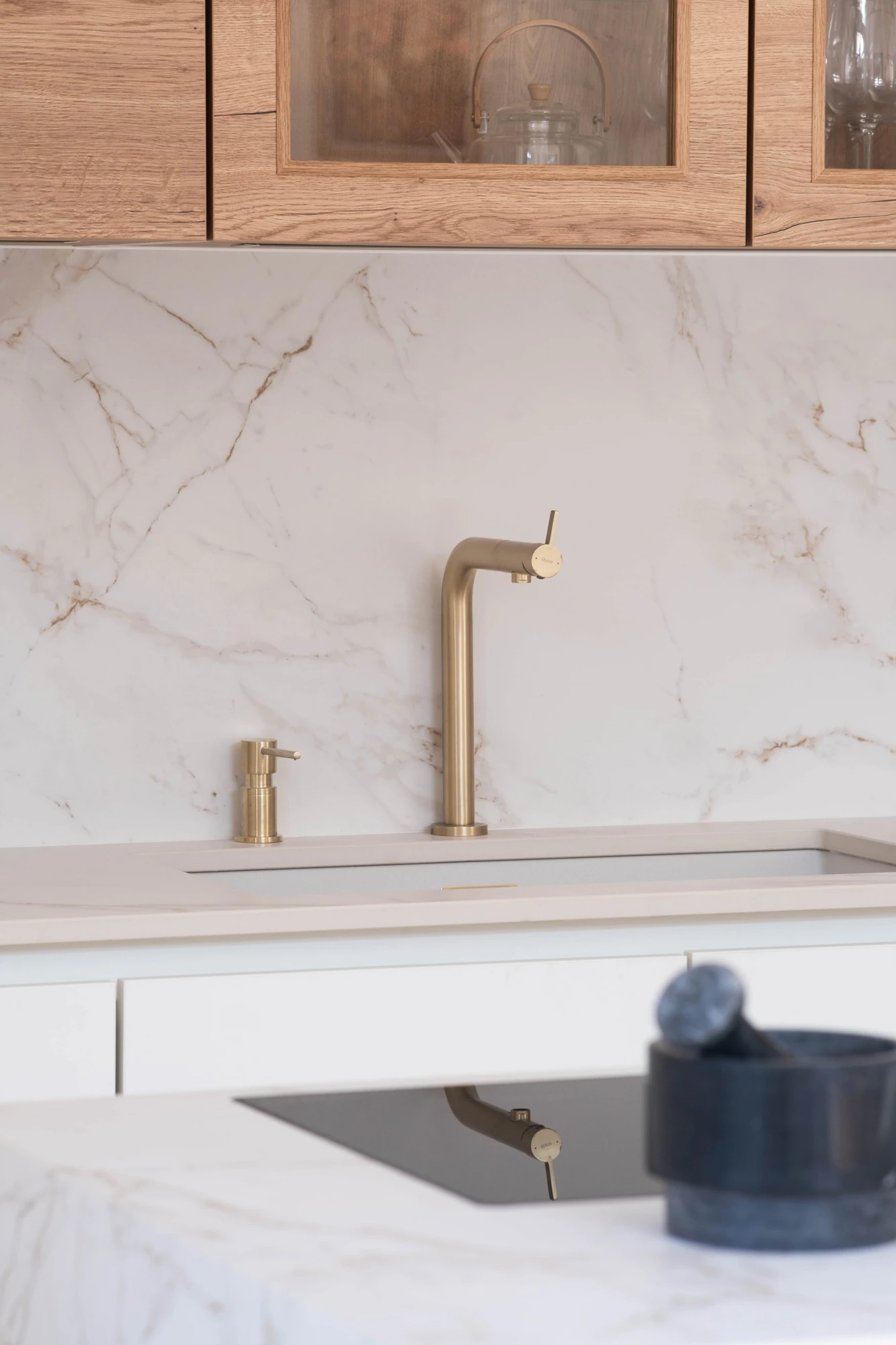 Conceived as true living spaces, these kitchens owe much of their identity to this elegant ultracompact surface, which delivers a contemporary yet warm atmosphere. The precision of PMG Concept’s craftsmanship plays a key role in achieving this result, ensuring seamless vein continuation and impeccably executed details.