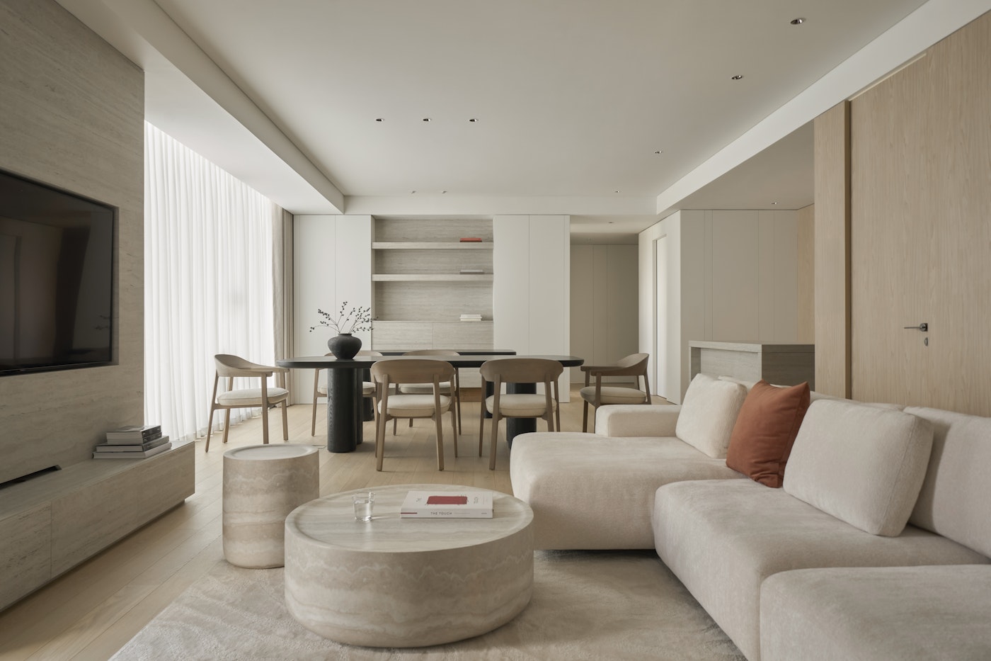 Som sand som rör sig i öknen reflekteras olika skuggor i beige längs den här ytan för att fånga essensen av rörelsen.