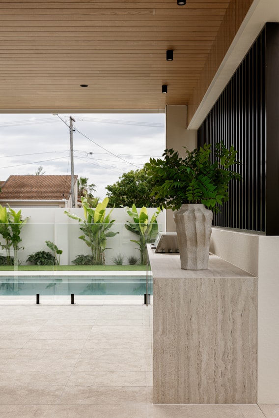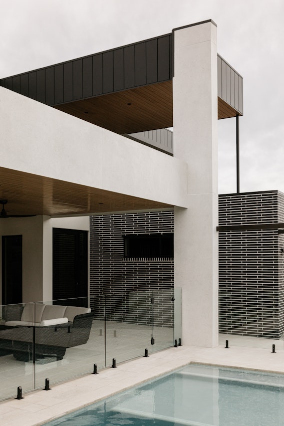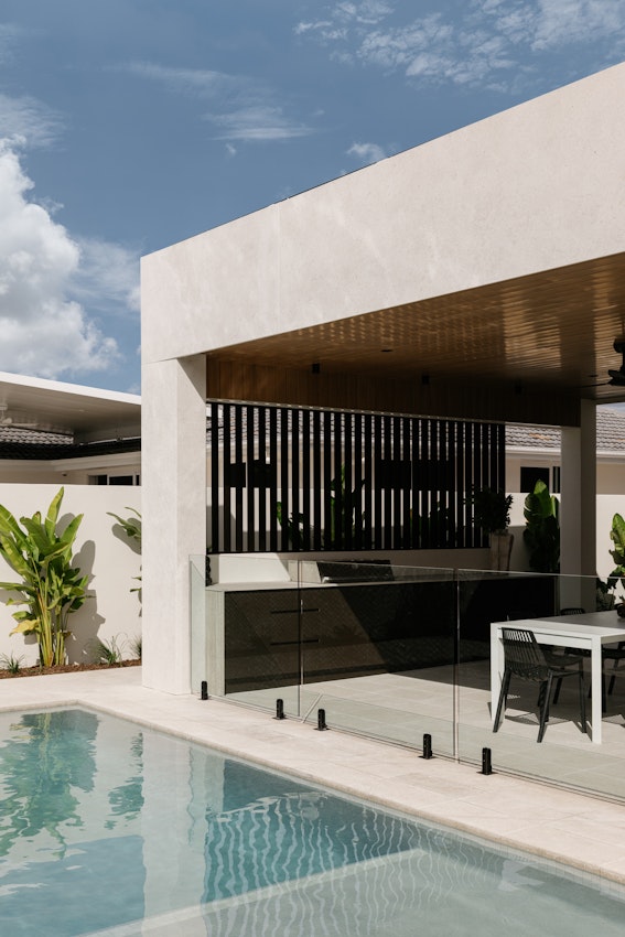 A house with a pool surrounded by Dekton and nature.