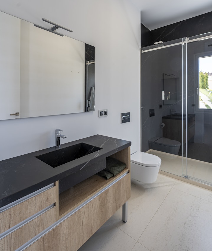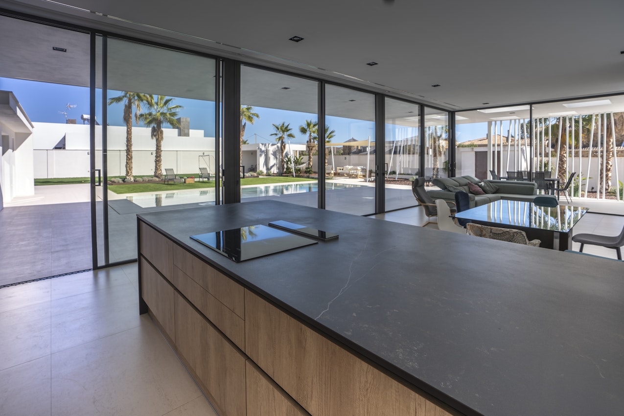 A modern house in Almería emphasises its contemporary lines by using Dekton for the floor and the interior of the swimming pool.