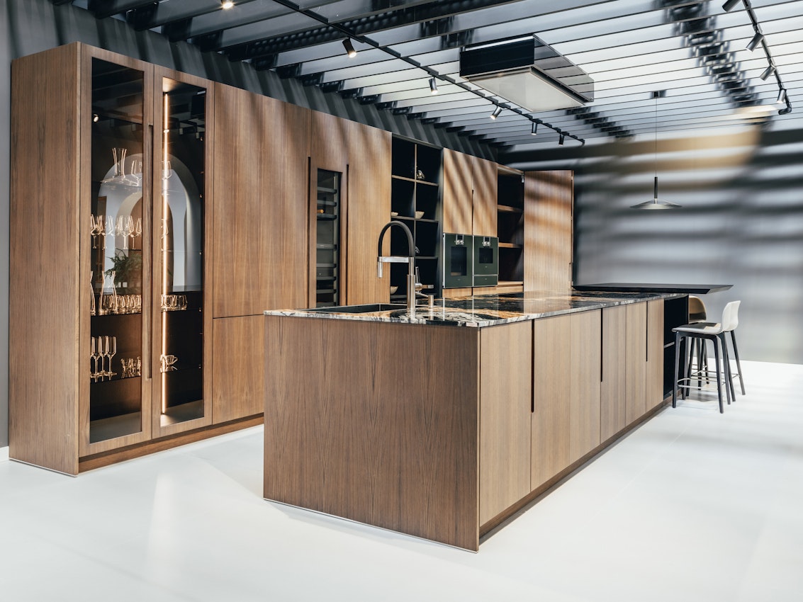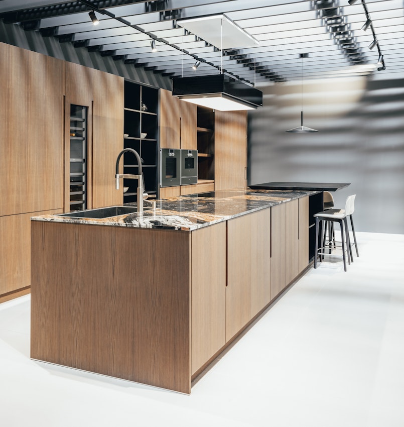 Esta sofisticada cocina cumple con todos los requisitos y las necesidades del más estricto chef. Su diseño se centra en una gran isla central donde trabajar y reunir a los tuyos para disfrutar al máximo del espacio. Como protagonista la piedra natural.