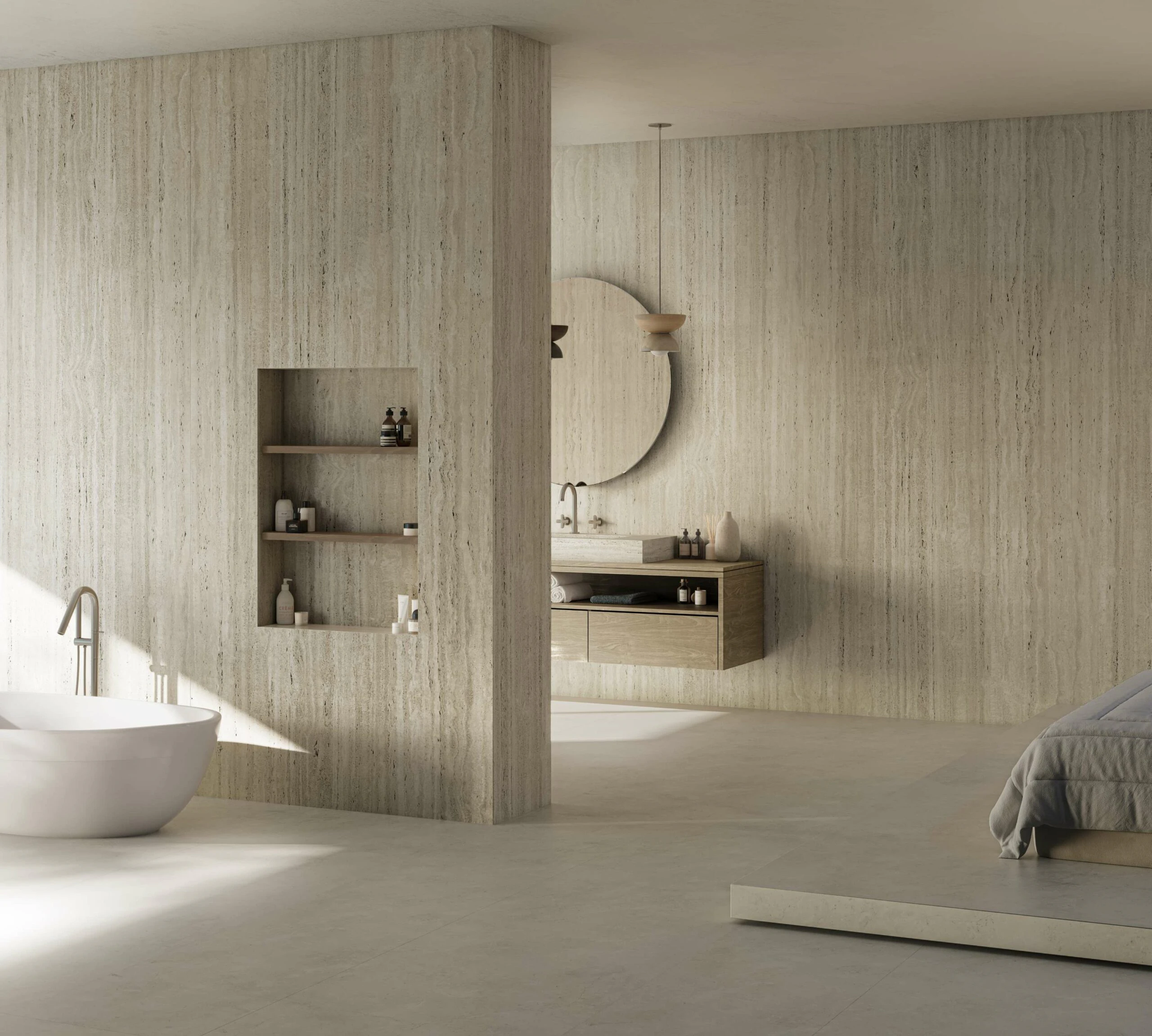 Thanks to Dekton's innovative TSP technology, the carbon-neutral Dekton® Pietra Edition collection introduces a technological layer to iconic natural stones, with six serene designs that bring a warmth and modern elegance to any indoor or outdoor project. The collection pays homage to the enduring elegance of Mediterranean natural stones while elevating their design, features, and sensorial perception, creating spaces full of luminosity, modernity and simplicity.