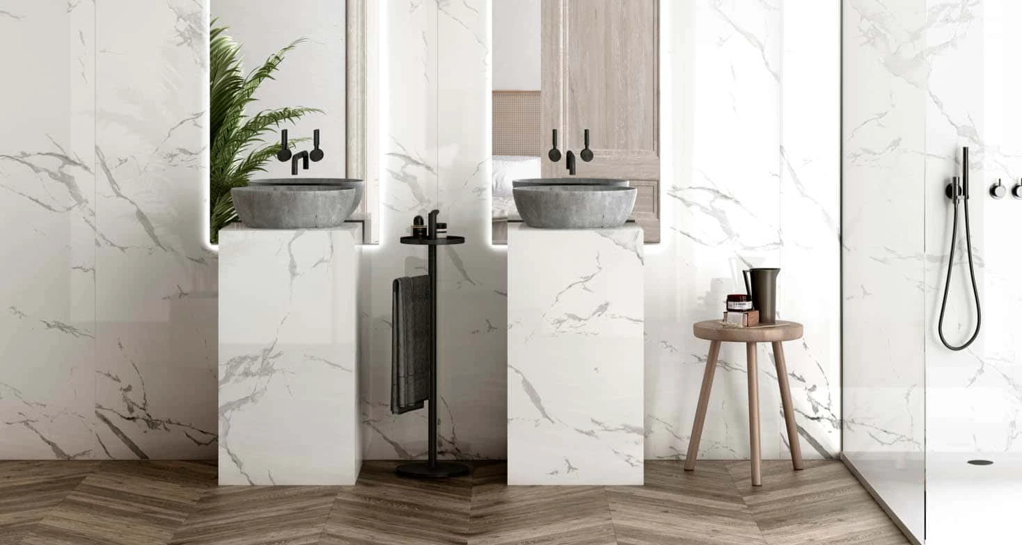 Cosentino erbjuder dig många alternativ att uppnå en nordisk inredning i ditt vardagsrum, kök eller badrum, från beklädnad till bänkskivor, kandfat och duschkar: