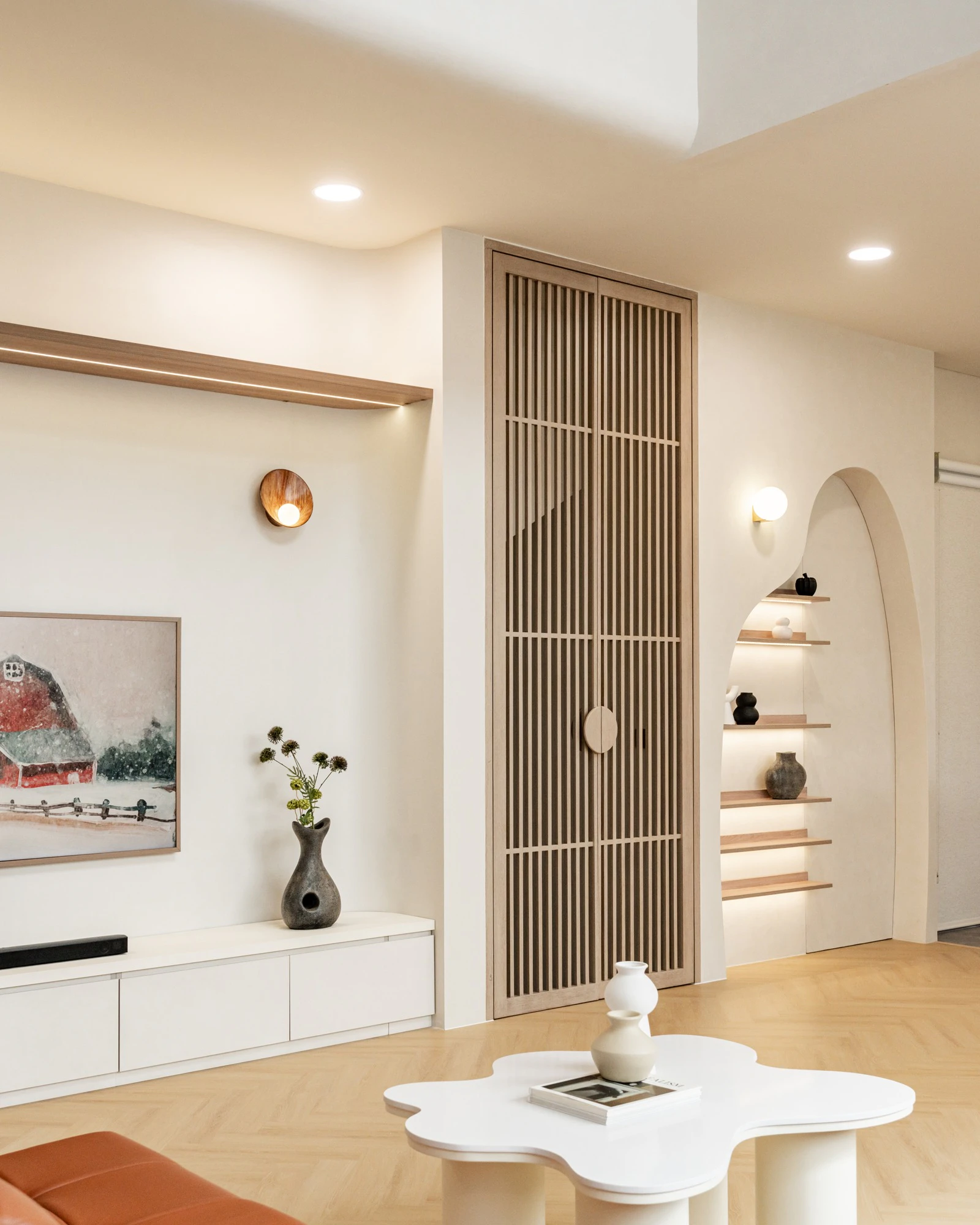 From a spatial perspective, the kitchen is not seen here as a secondary space but as the true nucleus of domestic life. “The pantry and the island truly function as the heart of the home, located right at its centre. It is where clients welcome family and friends, and where, naturally, most gatherings take place,” notes Dunarra Interior.