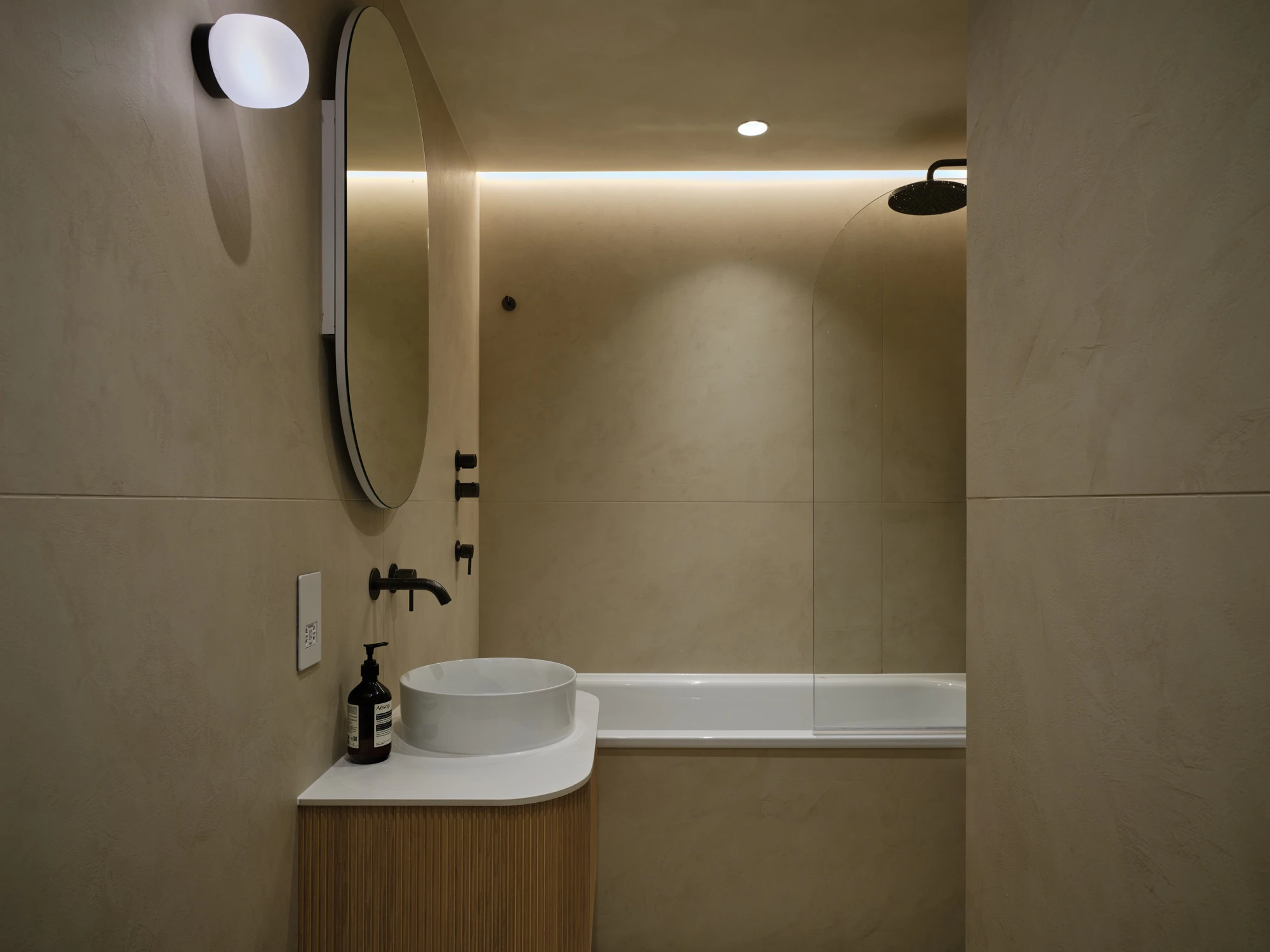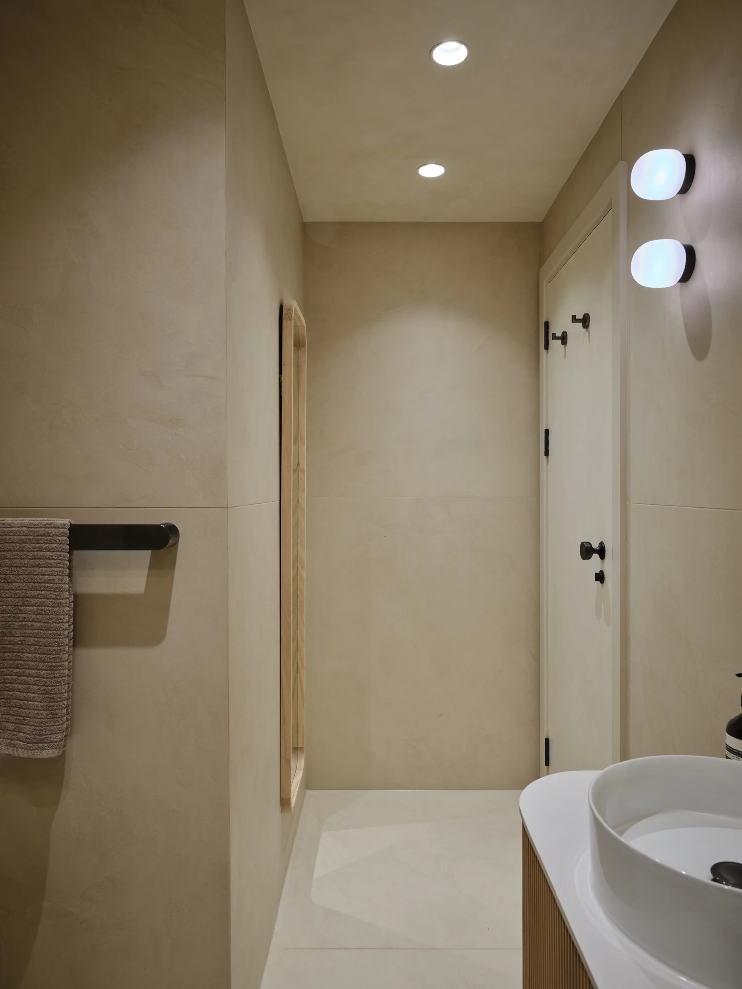 The continuity between vertical and horizontal planes reflects a clear intention for visual control and ease of maintenance, as well as ensuring resistance to moisture and intensive use. “Applied to both wall cladding and flooring, the material creates a unified, spa-like environment defined by clean lines and minimal joints. The result is a calm and understated bathroom, designed for long-lasting performance and visual harmony,” the studio explains.