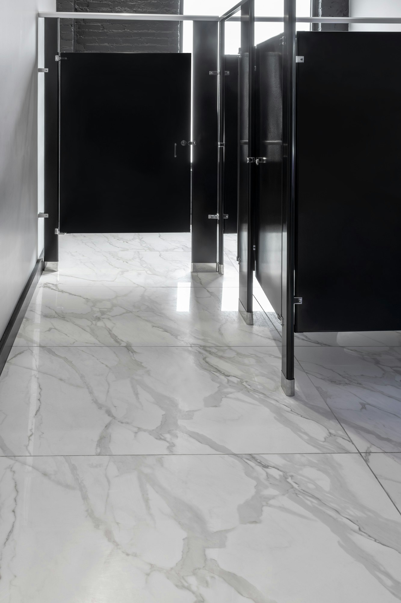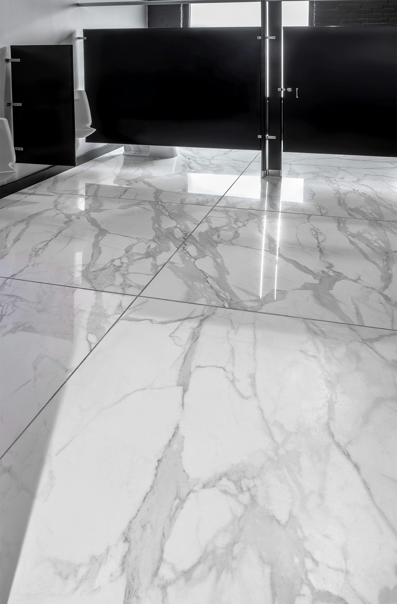 Dekton Kelya can be seen on the wall holding the establishment’s logo and adjacent to a magnolia tree. For some contrast, Dekton Lucid was specified on the bathroom flooring and countertops. Lucid is characterized by its thick gray veinings on white canvas, reminiscent of the world’s most iconic marbles.