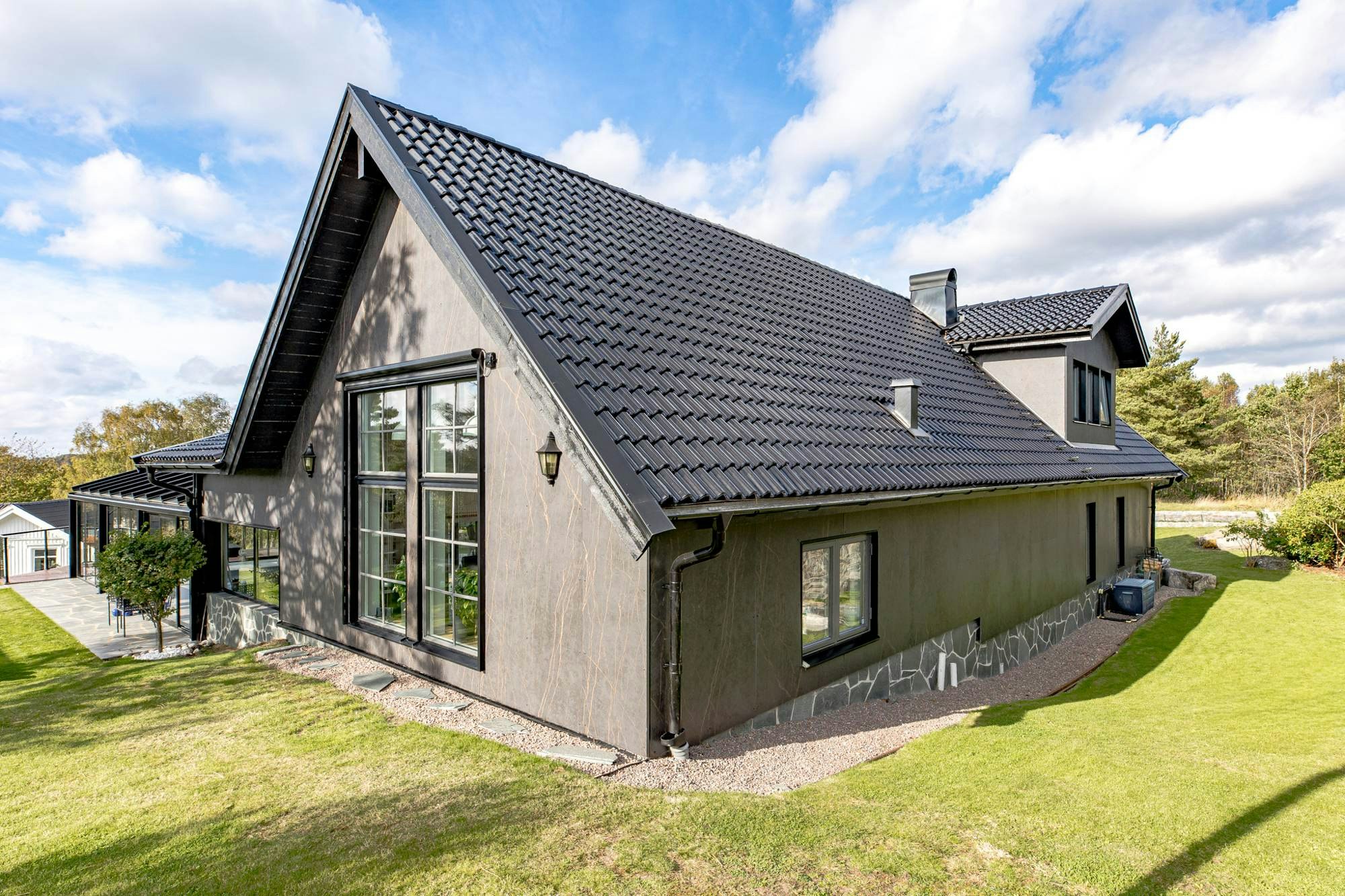 Considering Sweden's extreme climate, which experiences rain, snow, blizzards, and sun, the designer thought Dekton, impervious to temperature changes, was perfect for cladding his home's facade. Its moisture-resistant quality also prevents stains, mould, or efflorescence, minimising maintenance needs. The surface, in fact, maintains dimensional and aesthetic stability for decades.
