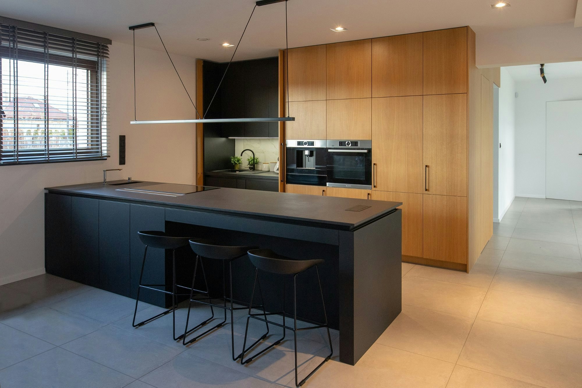 - Combine wood with a natural stone worktop in neutral colours – the result will be spectacular! You can choose either a 100% natural stone worktop from our Sensa brand of protected natural stone, or an innovative and sustainable surface such as Silestone and Dekton.