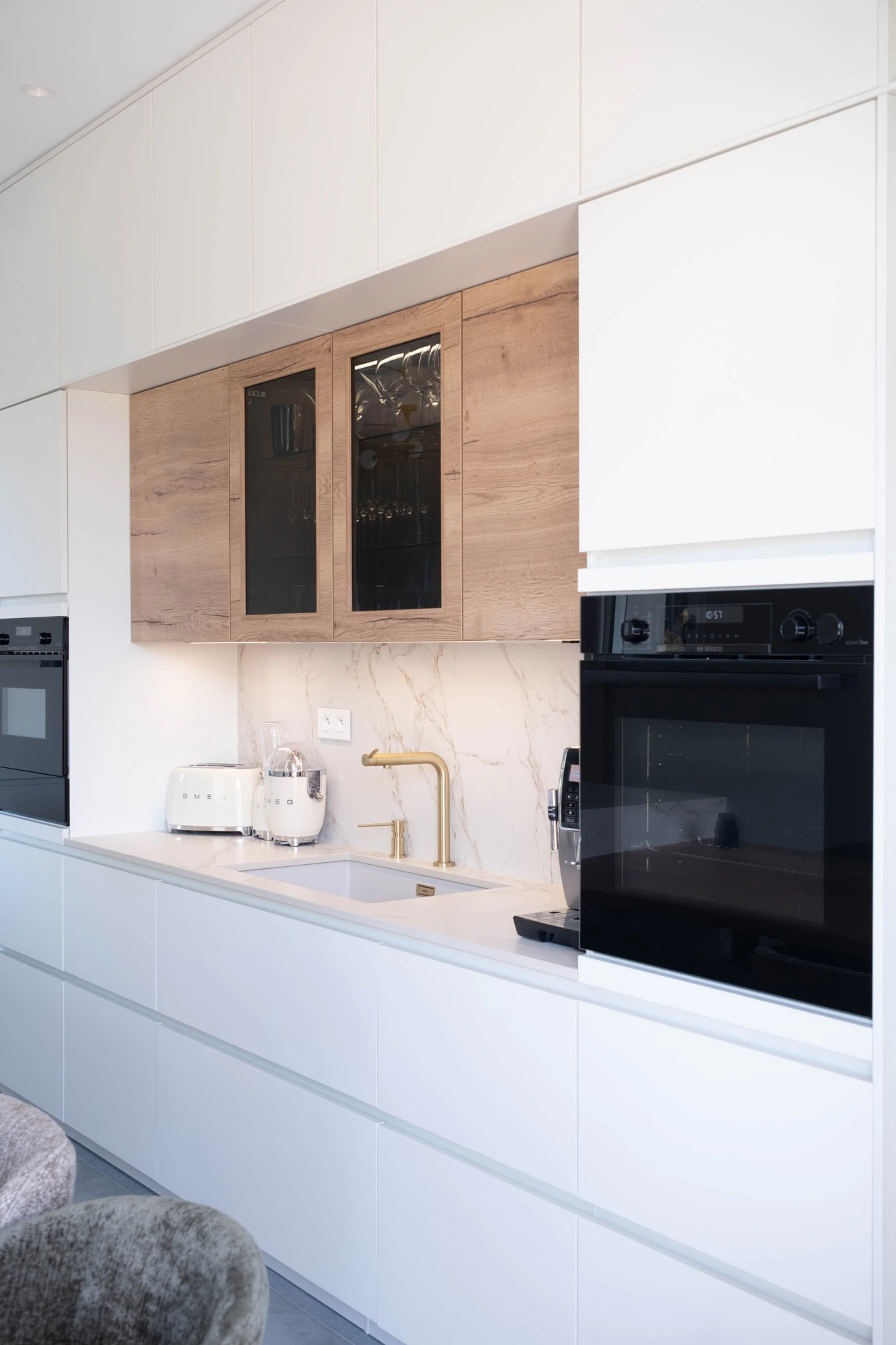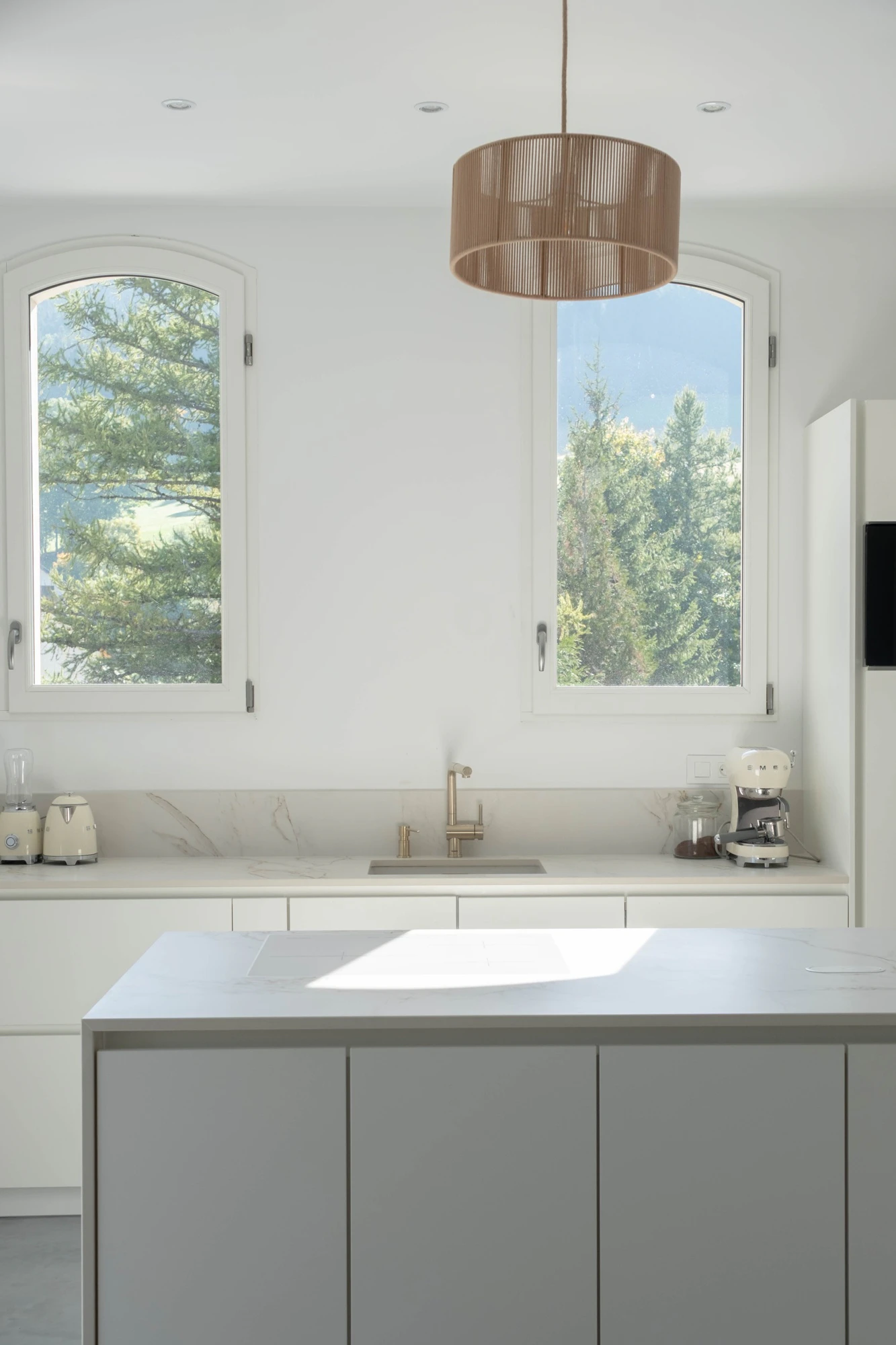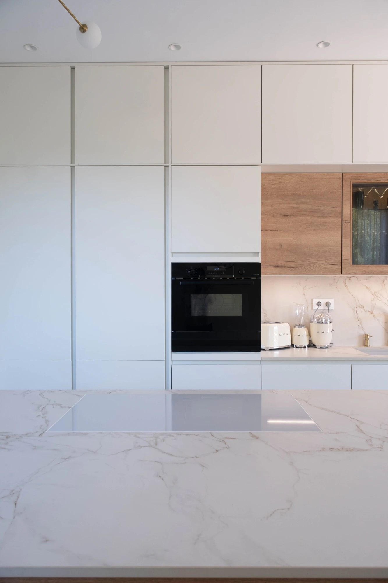 Conceived as true living spaces, these kitchens owe much of their identity to this elegant ultracompact surface, which delivers a contemporary yet warm atmosphere. The precision of PMG Concept’s craftsmanship plays a key role in achieving this result, ensuring seamless vein continuation and impeccably executed details.
