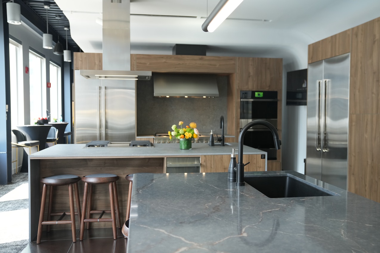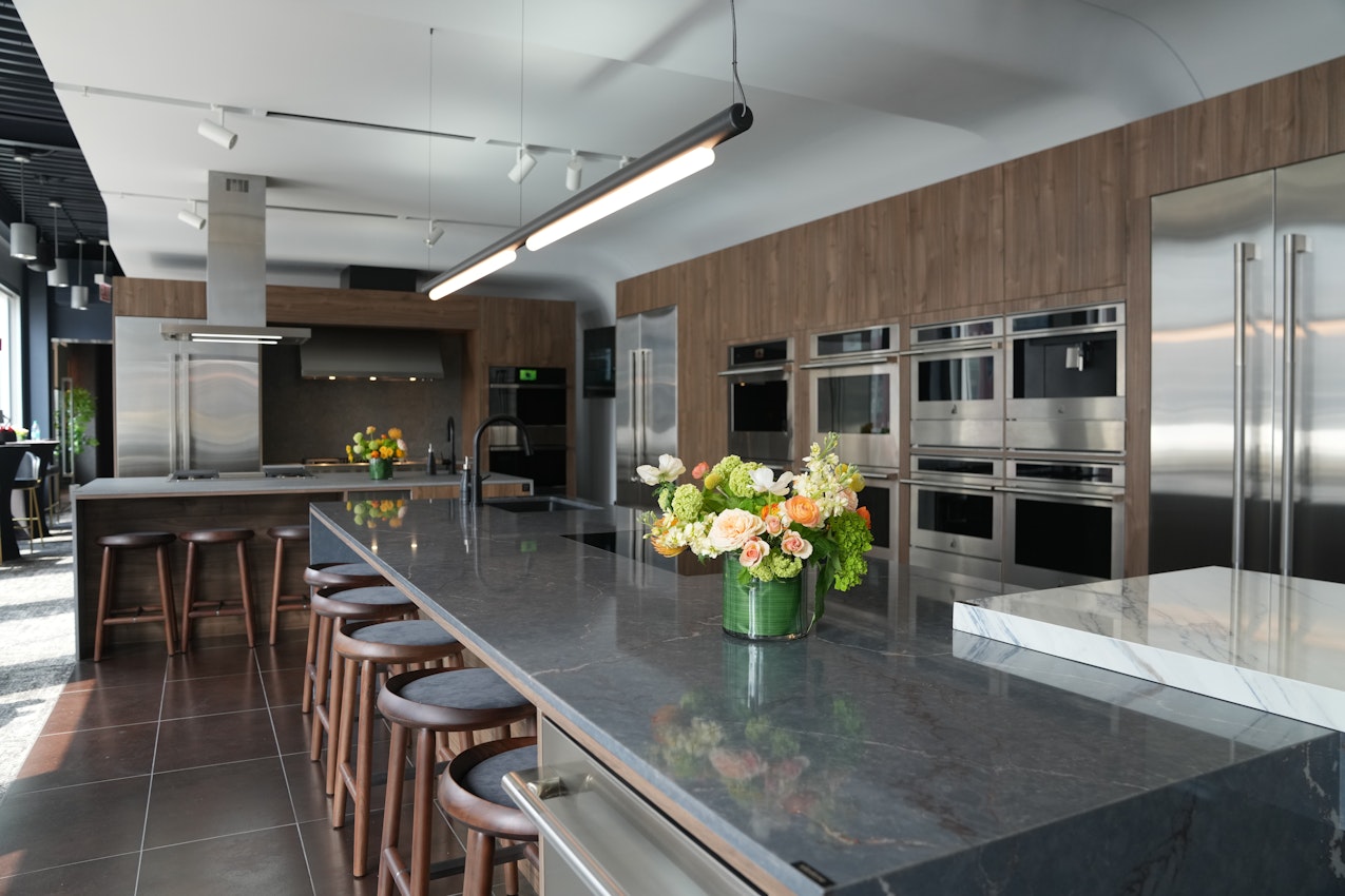 Dekton and Silestone add dynamic functionality to the World of Whirlpool showroom.